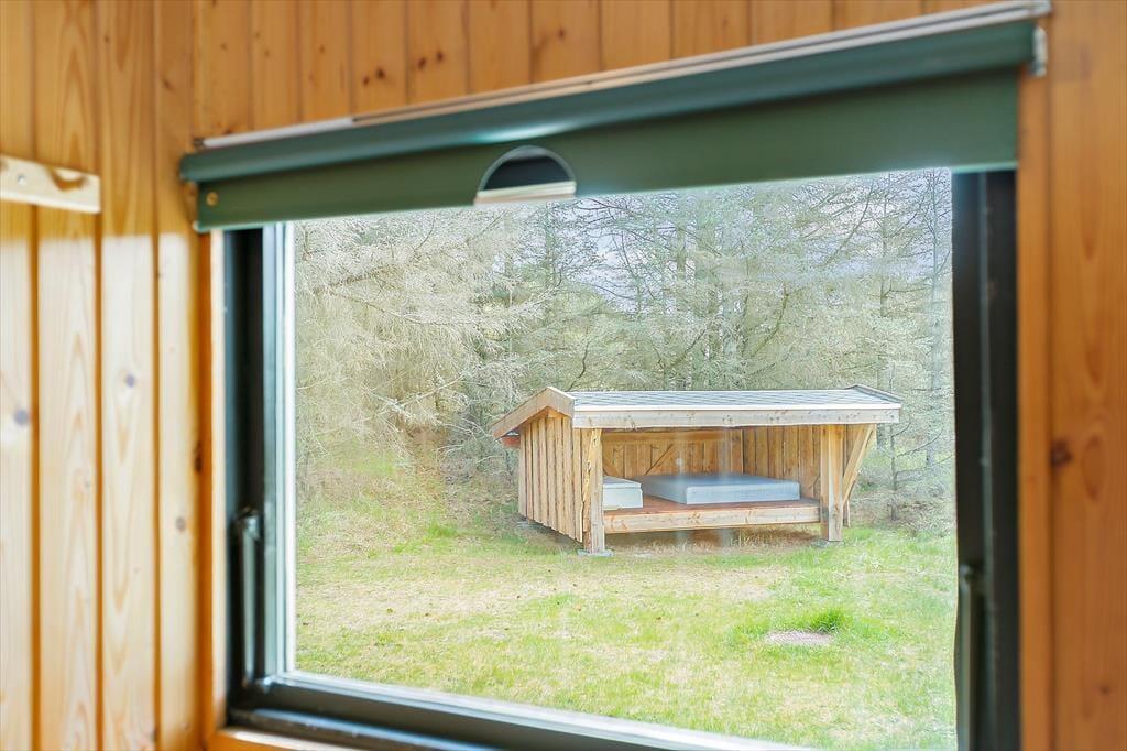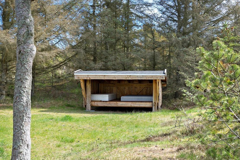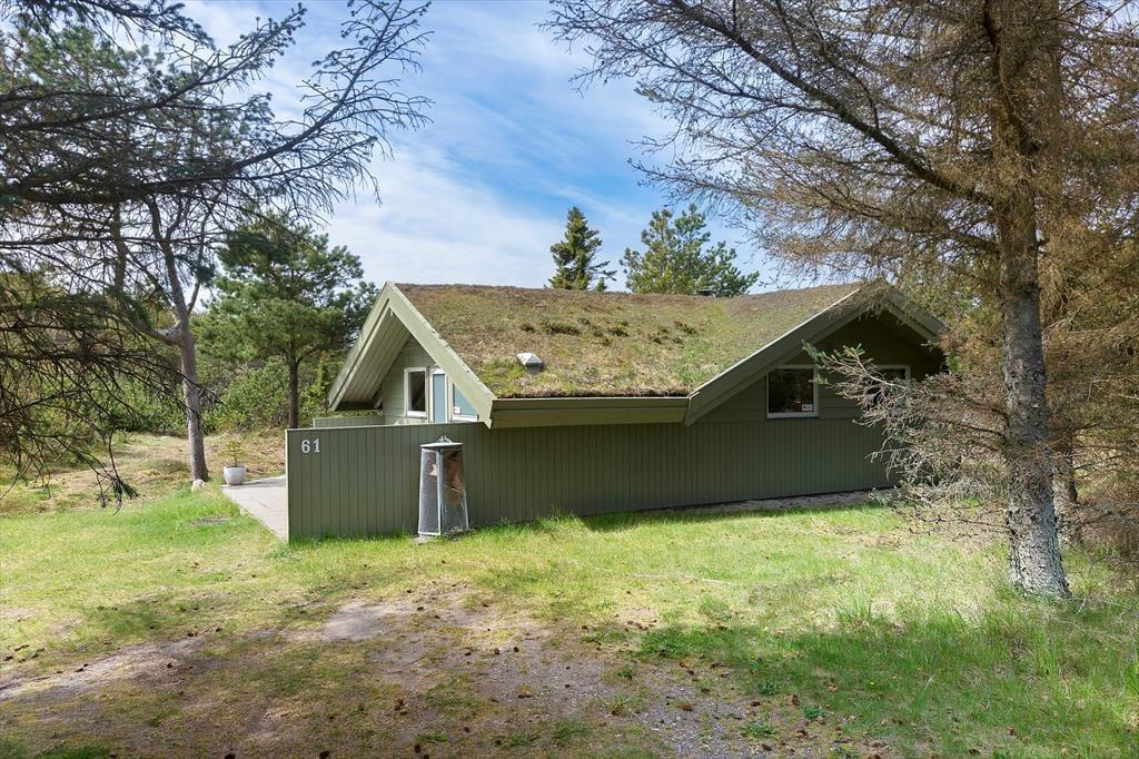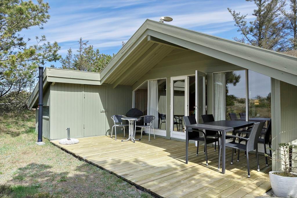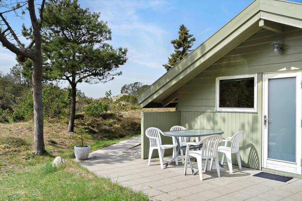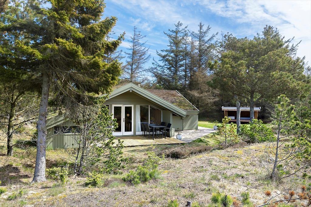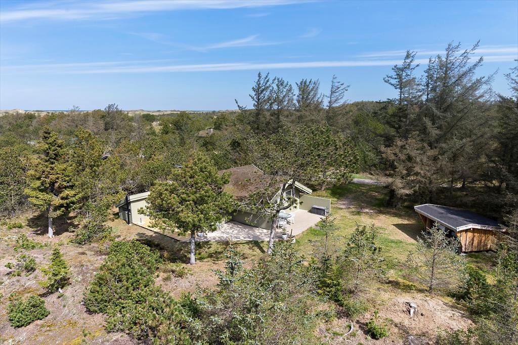 Huset er beliggende på en dejlig naturgrund med shelter. Store klitter med marehalm og buske gør samtidig at man føler sig i et med den fantastiske natur der er kendetegnende for området ved Rødhus hvor huset ligger direkte ud til et stort fredet areal med havudsigt flere steder fra høje klitter. På husets terrasse hvorfra der er udgang fra stuen, kan man sidde og nyde det danske sommervejr og de lange lyse aftener. Der er i forbindelse med terrassen også en udendørs bruser. Hærvejen passerer huset 500 meter fra huset.
