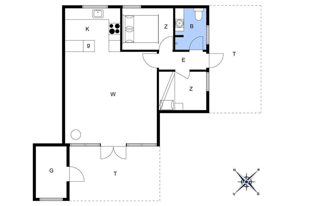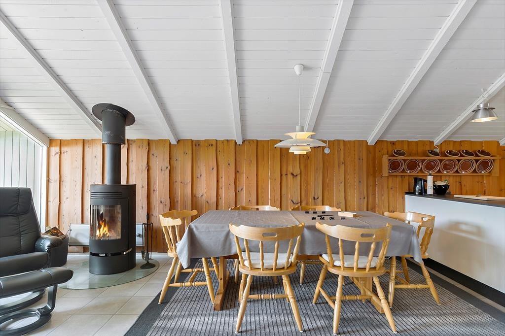 Huset er et mindre men velholdt standardhus med imødekommende og venlig indretning. Indrettet med 2 soverum, et med køjer og det ene med dobbeltseng. Køkkenet er i åben forbindelse med stuen, og desuden lille fordelingsgang hvor der er adgang til husets soverum samt badeværelse med bruser. I stuen er der brændeovn og hyggelige møbler . De ideelle rammer for en ferie hvor samvær, hygge og god tid er i højsædet.