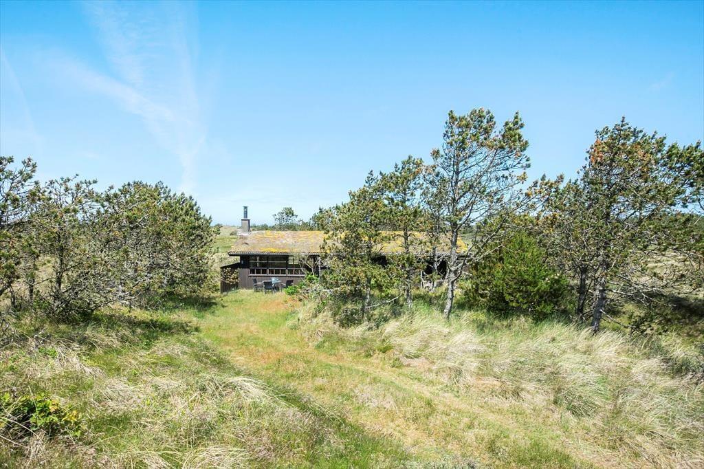 I husets sydøstlige ende ligger en overdækket terrasse, og hvis I hellere vil sidde under åben himmel, kan I slå jer ned syd for huset. Den ugenerede grund måler hele 2500 m2, og her får marehalm, krogede fyrretræer og anden naturlig bevoksning lov til at brede sig frit. Nord for grunden åbner klitheden landskabet op, og som en skøn detalje er alle nabohuse meget diskret placeret, så det er virkelig naturen, der råder her på egnen.