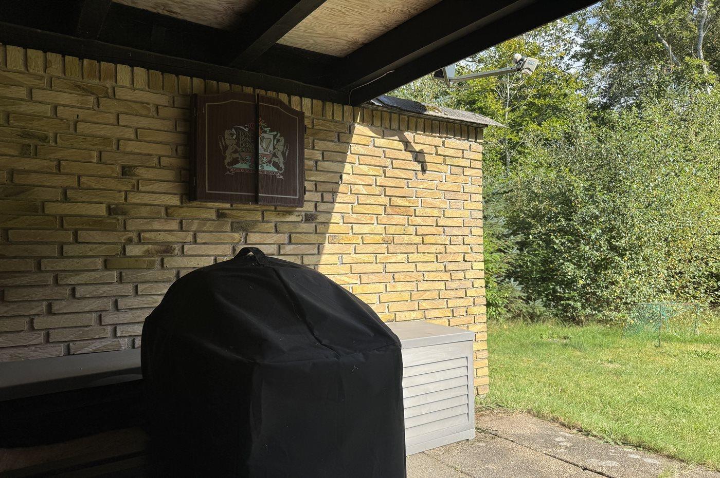 Ferieboligen er beliggende på en 4591 m² stor naturgrund. Der er 1000 m til havet. Nærmeste forretning er beliggende i en afstand af 4500 m. Der er en golfbane i en afstand af 3000 m. Til ferieboligen hører åbent terrasseareal. Desuden er der overdækket terrasse. Udgang til altan. Gynge. Fodboldmål. Grill til rådighed. Der er installeret stik til opladning af elbil. Parkering ved ferieboligen.