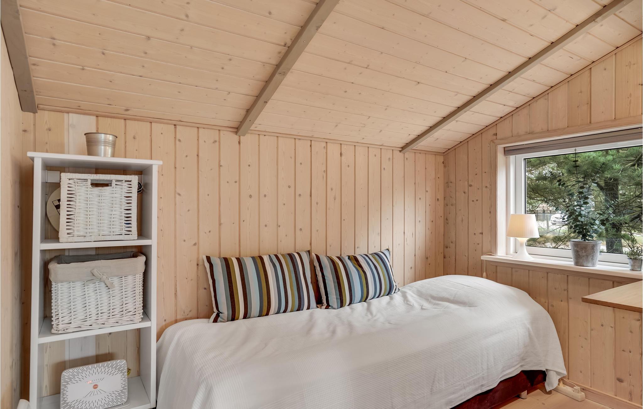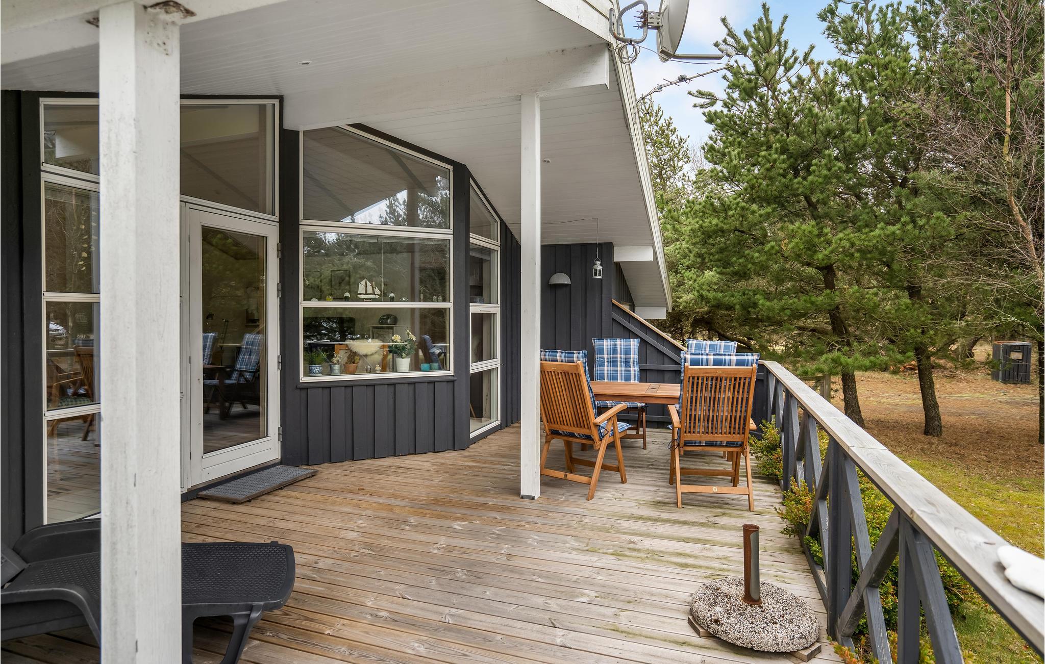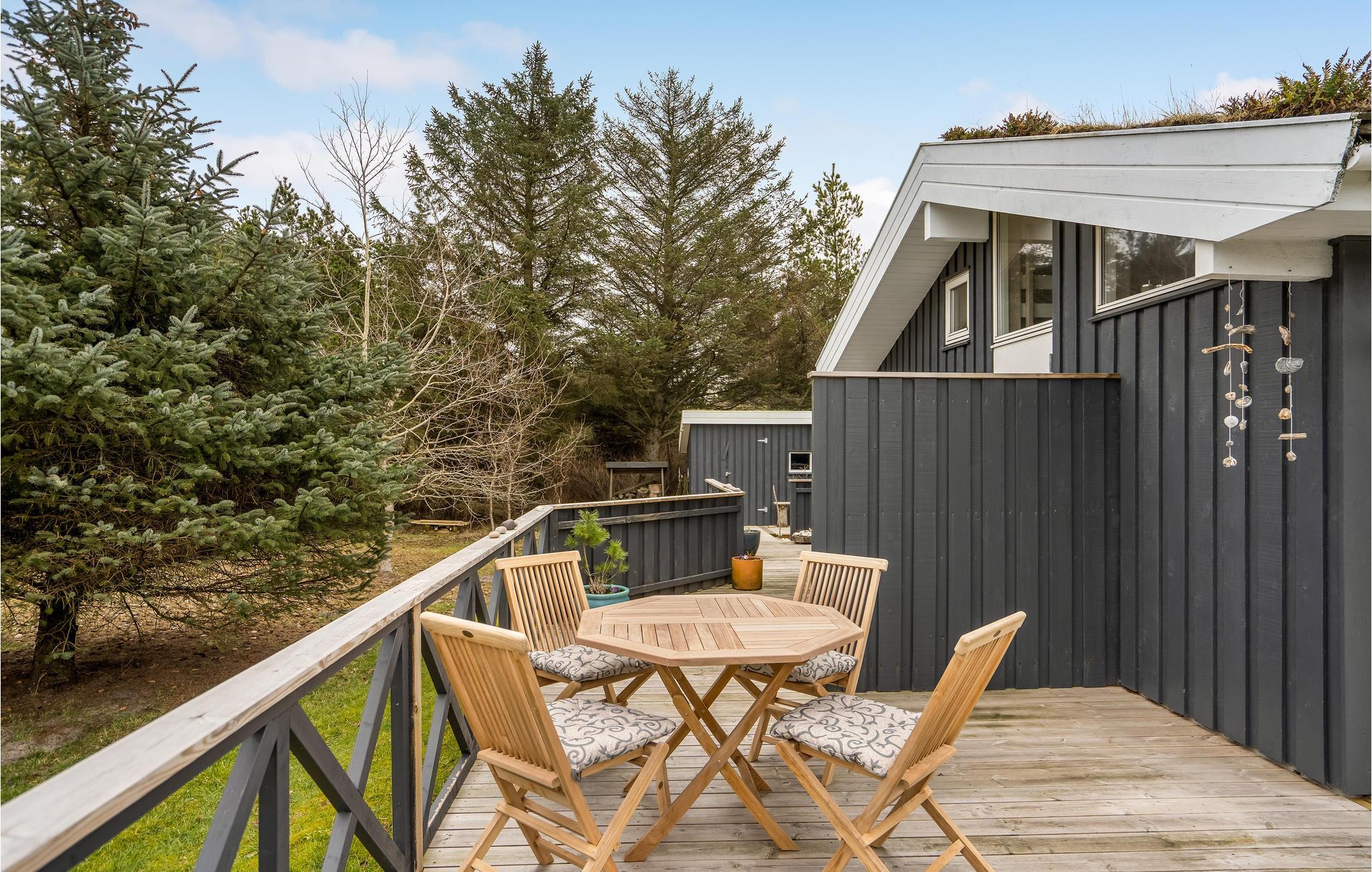 Det indbydende hus ligger på en velholdt grund, som er omgivet af træer i et roligt sommerhusområde. Der er gode rammer til familien, for huset er en fantastisk lille oase, der får jer til at glemme alt om den travle hverdag. Indretningen er lys og præget af træelementer, så huset virker roligt og behageligt. Måltiderne nydes med en vidunderlig udsigt til skoven. Læn jer godt tilbage i stuen, spil kort, sæt jer med eftermiddagskaffen eller en god bog, når I skal slappe af. I vinterhalvåret kan I skrue ekstra op for hyggen ved at tænde ild i brændeovnen og snakke om dagens oplevelser, ??mens flammerne knitrer i baggrunden.
