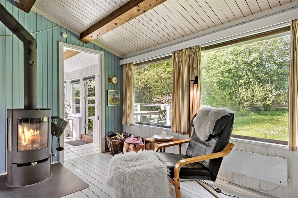 Indenfor finder du en hyggelig og funktionel indretning og 4 sengepladser. Her kan I nyde ferien og slappe af. I stuen kan du læse en bog eller se tv eller blot lytte til brændeovnens knitren, imens du nyder en kop kaffe og har udsigt til haven. Sommerhusets åbne lyse køkken har udgang direkte til en træterrasse, hvor I kan være sammen om at nyde dagens måltider. I den lyse havestue kan I sidde og nyde en stille stund og mærke en brise fra den åbne havedør.