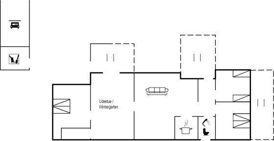 Sommerhuset har en skøn udestue, som man kan sidde i og nyde haven, eller man kan skyde døren helt fra ud til terrassen, hvor der er grill og havemøbler. Til de mindste er der ydermere sandkasse, legehus og fodboldmål. Der er luft/luft varmepumpe i huset og en dejlig brændeovn til hygge på køligere dage.