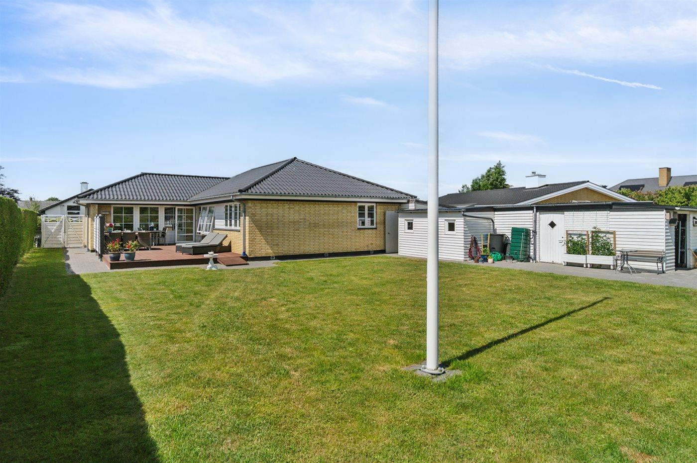 Den store velplejede grund indbyder til afslapning og på træterrassen eller den overdækkede terrasse kan man nyde frokosten eller en god kop kaffe i det fri. Den store stue er præget af det lyse interiør og den behagelige møblering. Køkkenet byder på alle de nødvendige faciliteter, man har brug for når feriemåltiderne skal tilberedes og fremstår velfungerende. Der findes et moderne badeværelse samt et gæstetoilet.