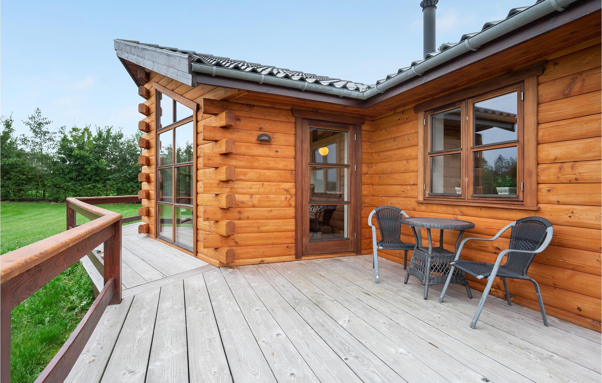 Moderne rustikt sommerhus med spabad og stor terrasse tæt på Rørbæk Sø i smukke omgivelser.