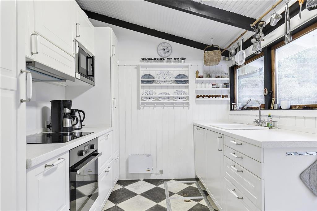 Huset er indrettet med entre, samt et dejligt, rummeligt badeværelse med brus. Der er et flot, åbent køkken med opvaskemaskine. Herudover er der to dejlige værelser med dobbeltsenge, samt et værelse med dobbelt sovesofa.