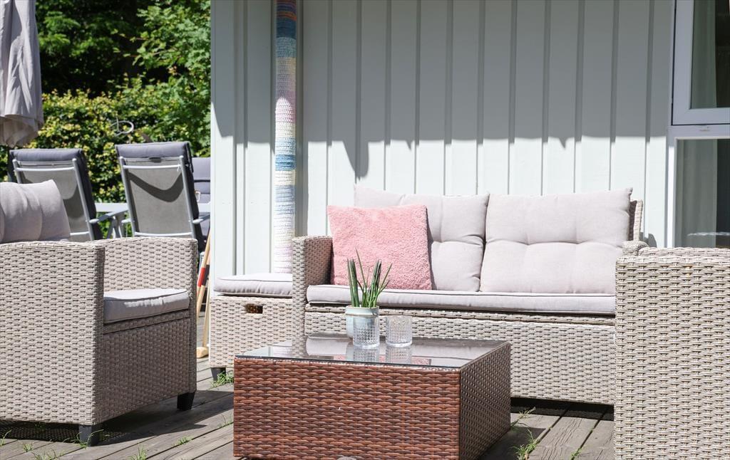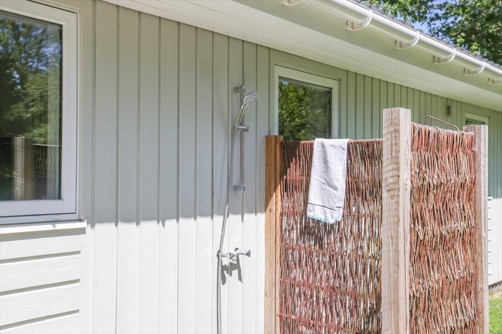 Udendørs er der flere terrasser at vælge imellem, hvor voksne og børn kan fordele sig på hver sin terrasse. Her kan en god bog nydes eller bare slappe af til fuglefløjt og måske være heldig at spotte et rådyr eller 2. På den store og regulære grund kan I fint spille badminton, boldspil, lege gemmeleg eller bare solbade.