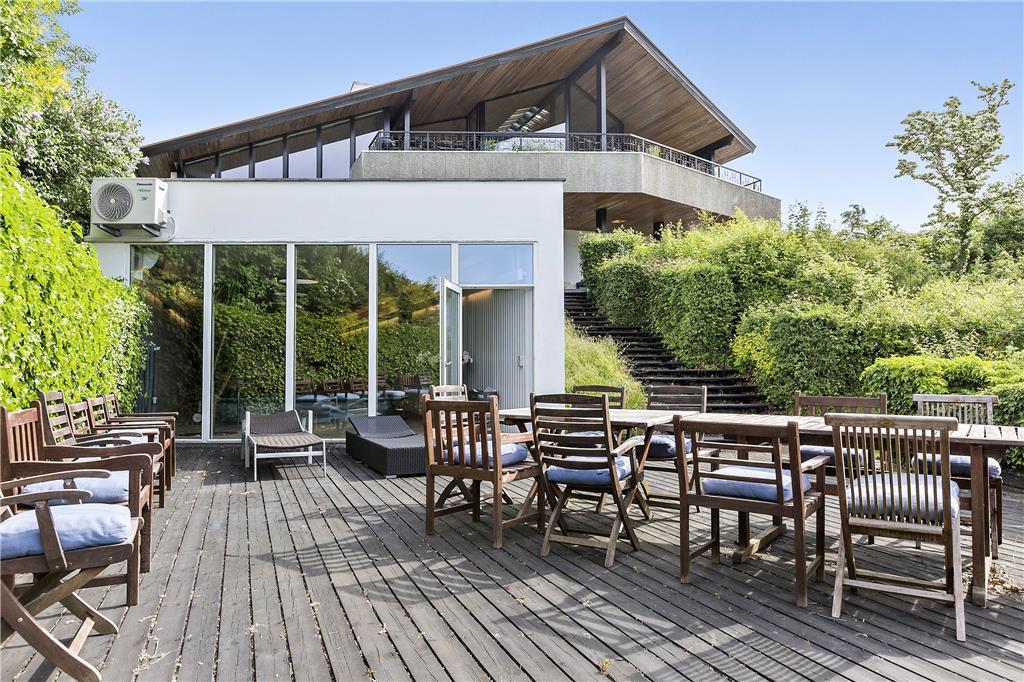 Moderne poolhus med havudsigt, wellness, 10 tema-soveværelser og stor grund ved Røsnæs.