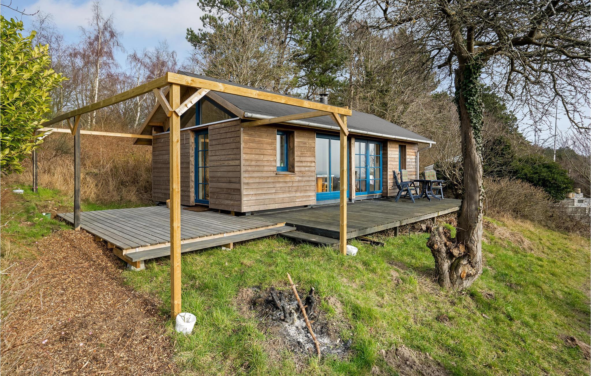 Der er lagt op til nogle dejlige feriedage med familien tæt ved Røsnæs Strand. Her giver dette helt særlige sommerhus jer nogle fredfyldte rammer, hvor I kan lade op inde og ude, læse bøger og spille brætspil, mens ilden buldrer i stuens hyggelige brændeovn. Det lille køkken er udstyret med alt, hvad I skal bruge til at fremtrylle feriens måltider. Den store træterrasse giver jer et dejligt sted at nyde morgenkaffen og afslutte dagene med lækre grillretter.