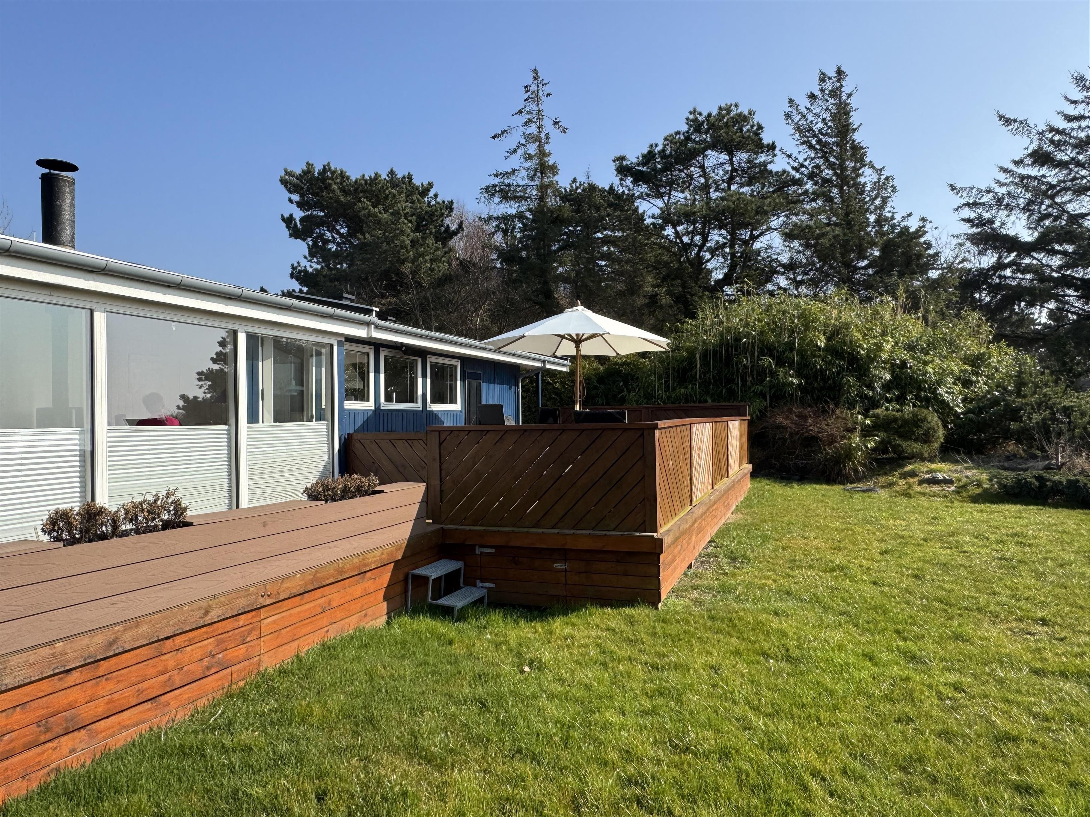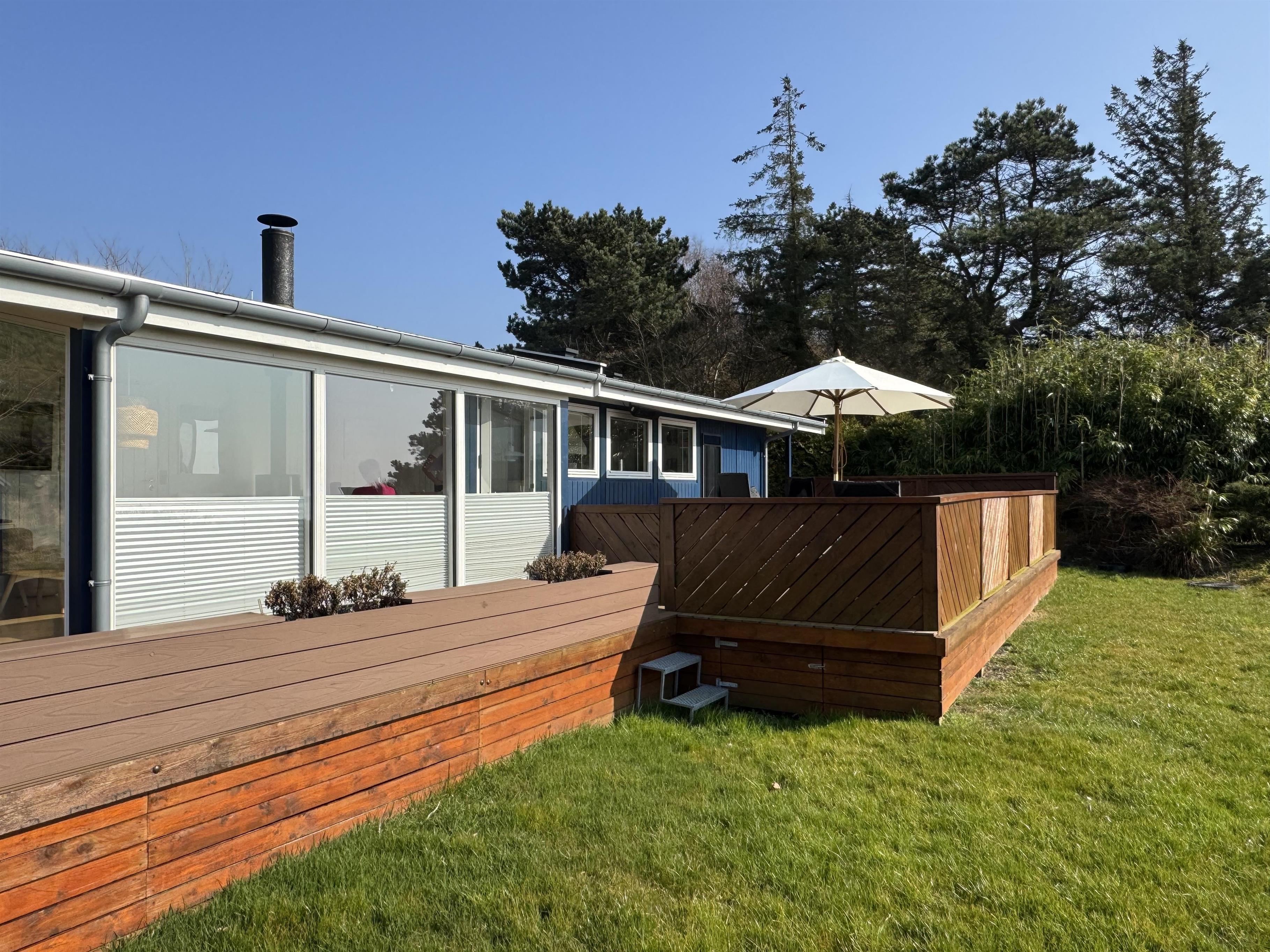 Udenfor er der en skøn, indhegnet terrasse med havemøbler og grill. Her er p-plads til bilen.