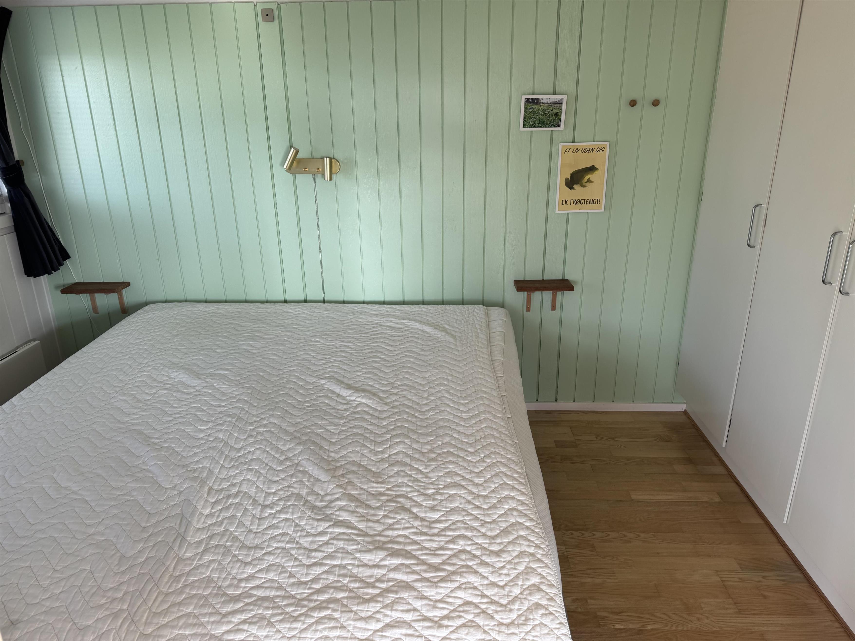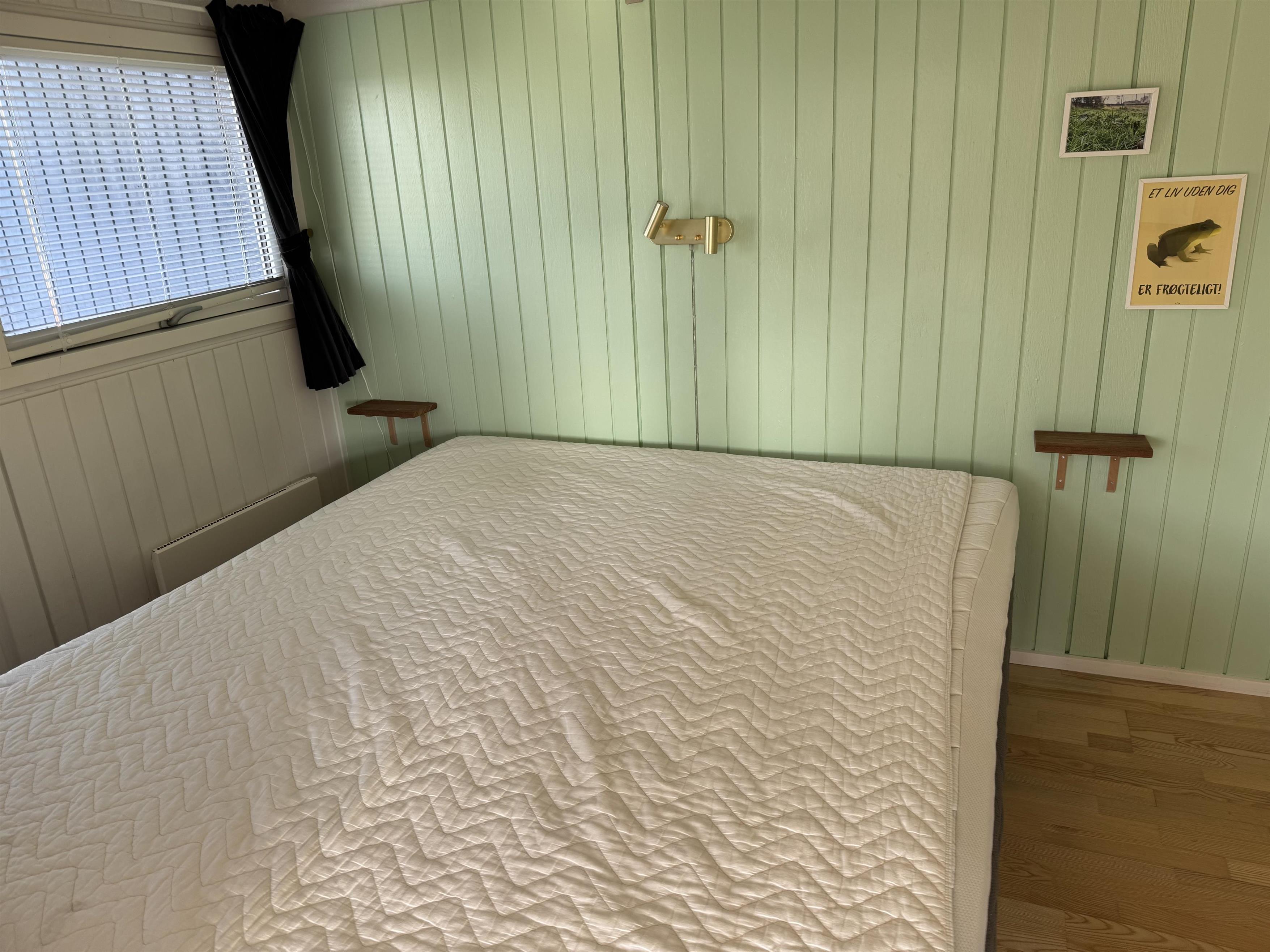 Huset har tre soveværelser. To soveværelser med dobbeltsenge og et tredje soveværelse med en dobbelt sovesofa.