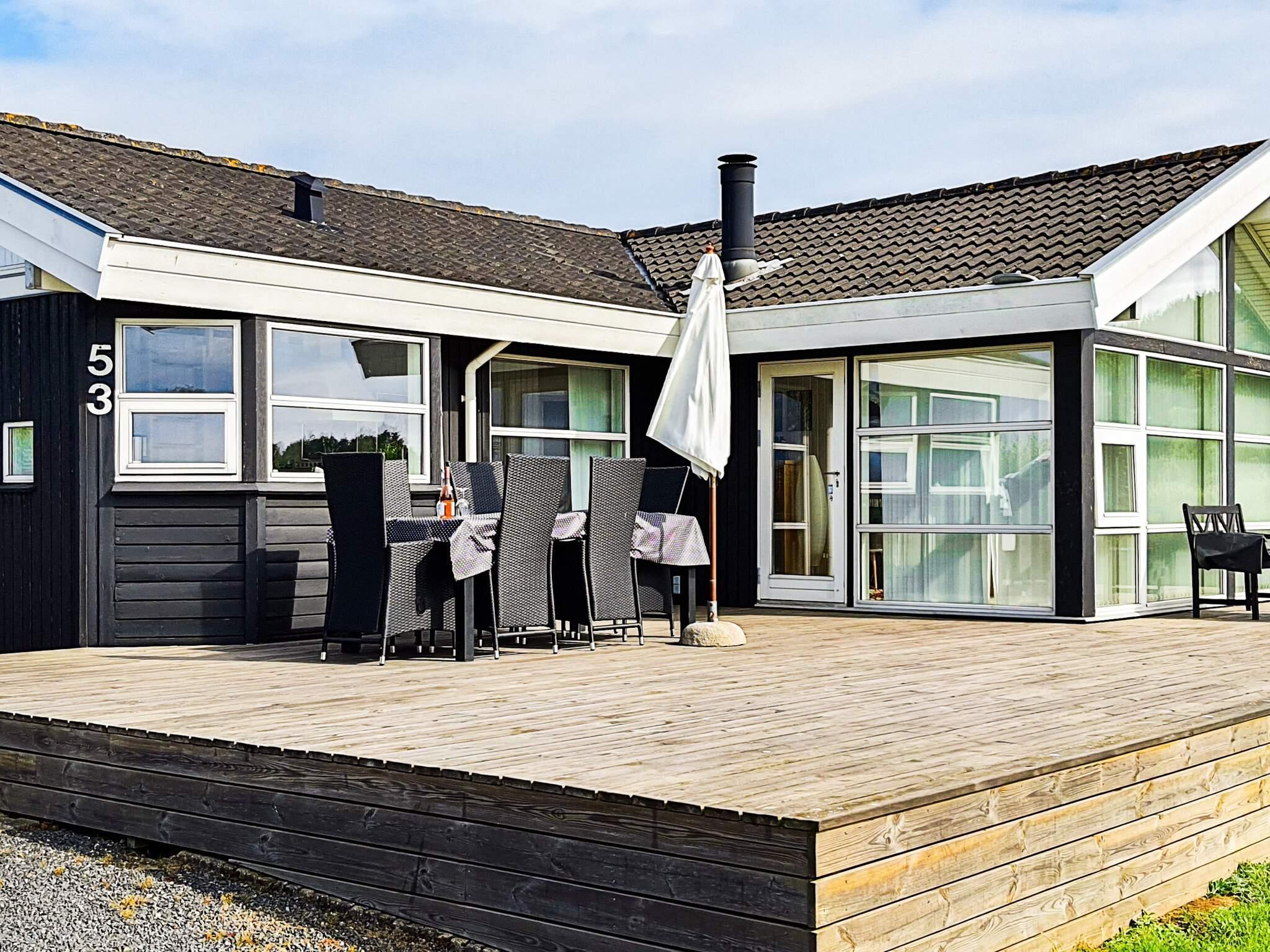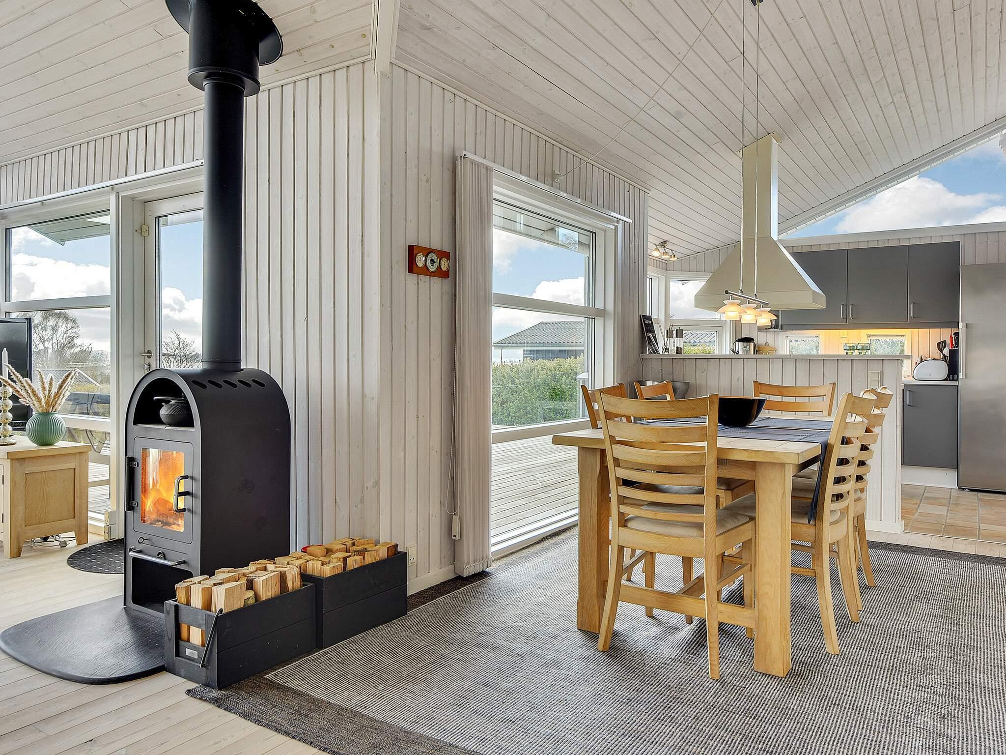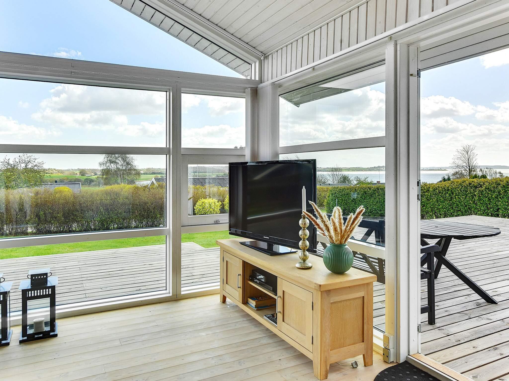 Sommerhuset har store vinduespartier og et lyst opholdsmiljø. Det åbne køkken/alrum med spise- og opholdsområde inviterer dig til at blive hængende. Samtaler ved spisebordet kan fortsætte uforstyrret, mens børnene finder sig godt tilpas foran tv'et. Der er også flere tyske kanaler at vælge imellem. Derudover er der tre separate soveværelser. Ejendommen er rummelig og byder på masser af plads til boldspil eller andre udendørs aktiviteter. På den store træterrasse kan du nyde udendørslivet fra morgen til aften, mens du nyder den smukke udsigt over vandet.