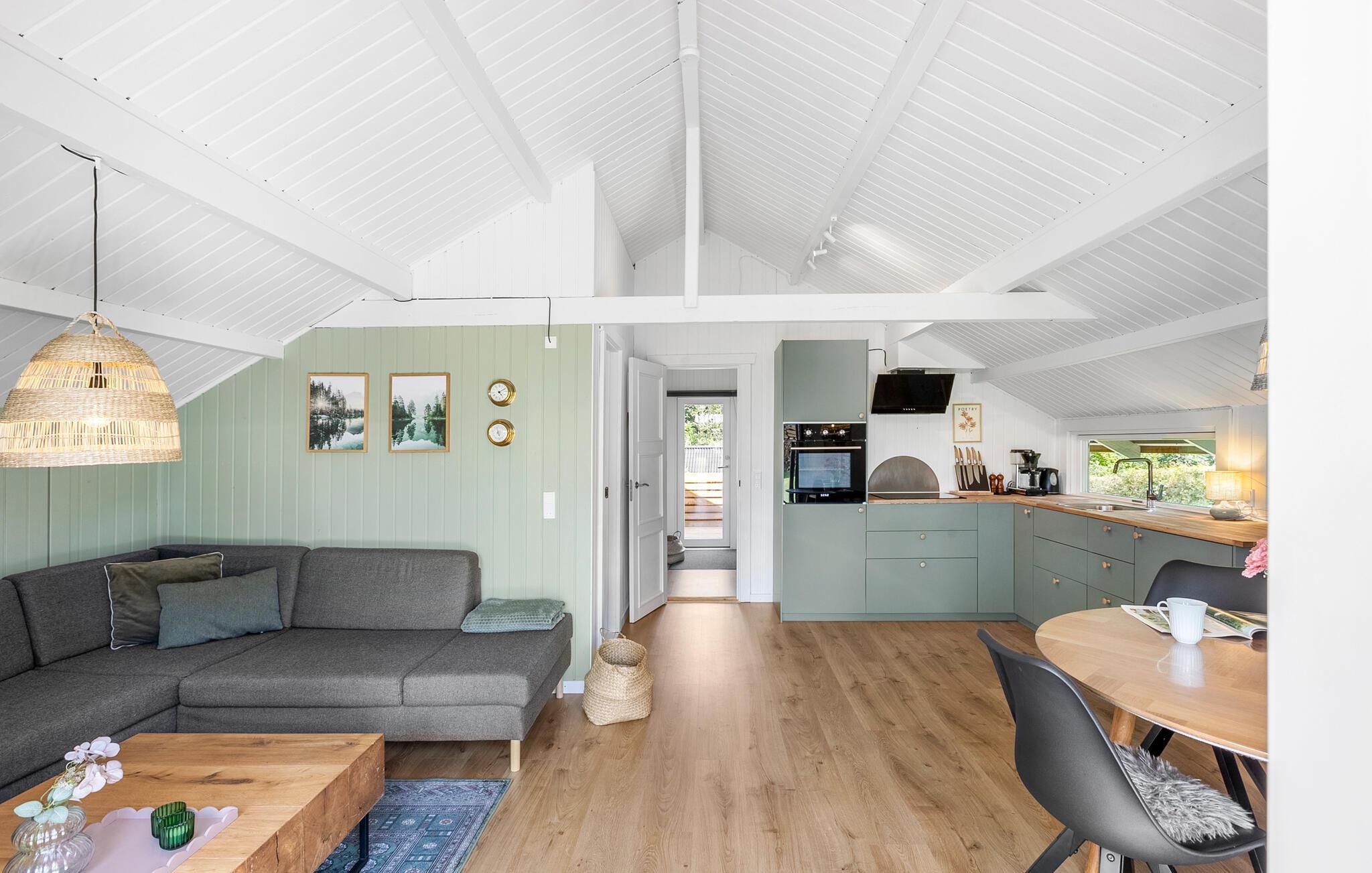 Dette hyggelige hus er perfekt til en afslappende pause fra hverdagen. Et smukt trælook, diskrete farver og et komfortabelt sofaområde skaber en atmosfære, hvor I hurtigt kan slappe af og genoplade. Tilbring afslappende timer med at læse, snakke eller lave mad sammen i det moderne køkken.