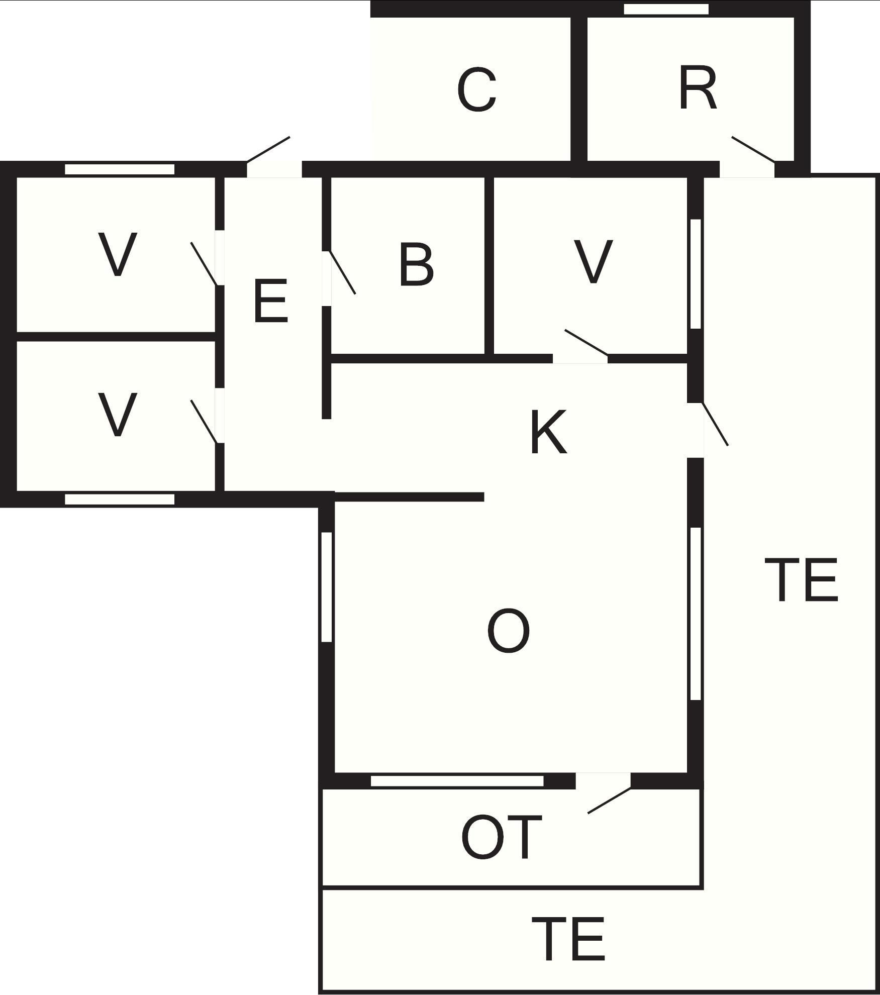 3 Soveværelser: (1DS)+(2K)+(2K), barneseng