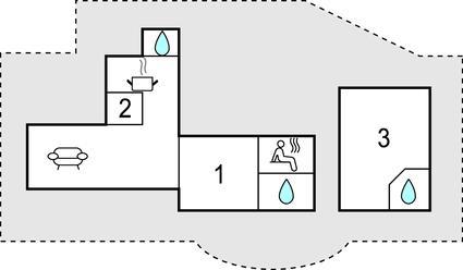 Badeværelse (nr. 1) - WC. Varmt og koldt vand. Bruser
