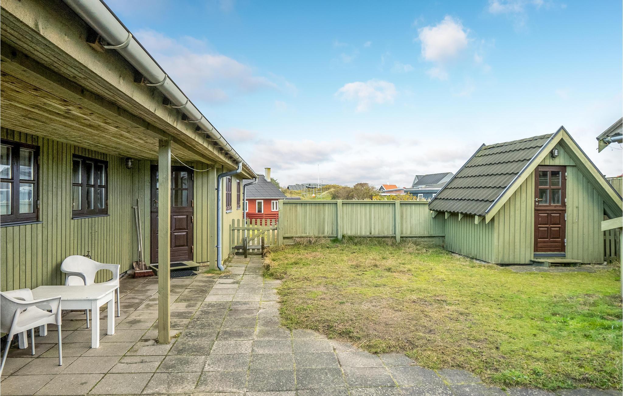 Der er en tilhørende gårdhave, som er lukket mellem feriehus og anneks, her er det er dejligt nemt at have hunde med, da de ikke kan løbe ud af gården.