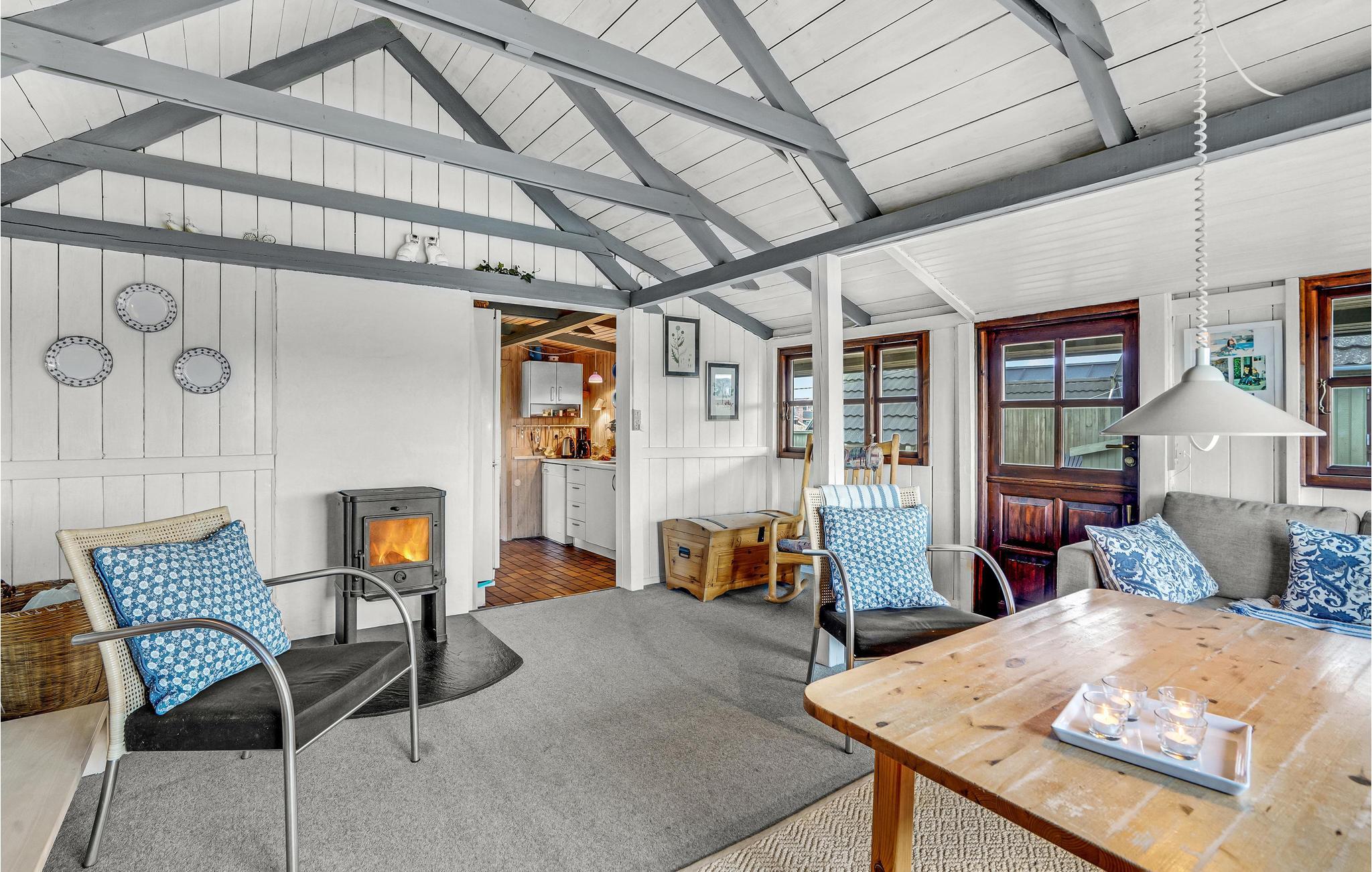 Huset præsenterer sig åbent og hyggeligt og er klassisk indrettet. Her kan I nyde de charmerende rammer og det behagelige lysindfald fra sprossevinduerne, mens I får varmen foran brændeovnen efter en lang gåtur. Der er god plads til madlavningsprojekterne i køkkenet, og samtidig kan børnene hygge sig med brætspil ved spisebordet.