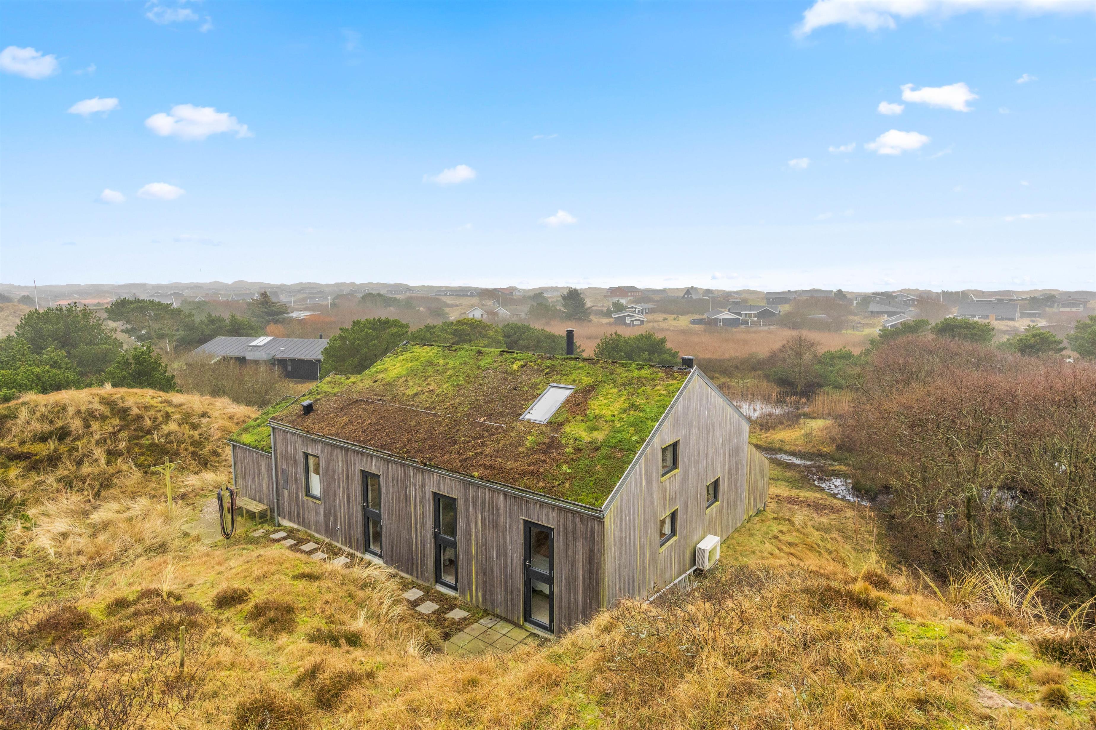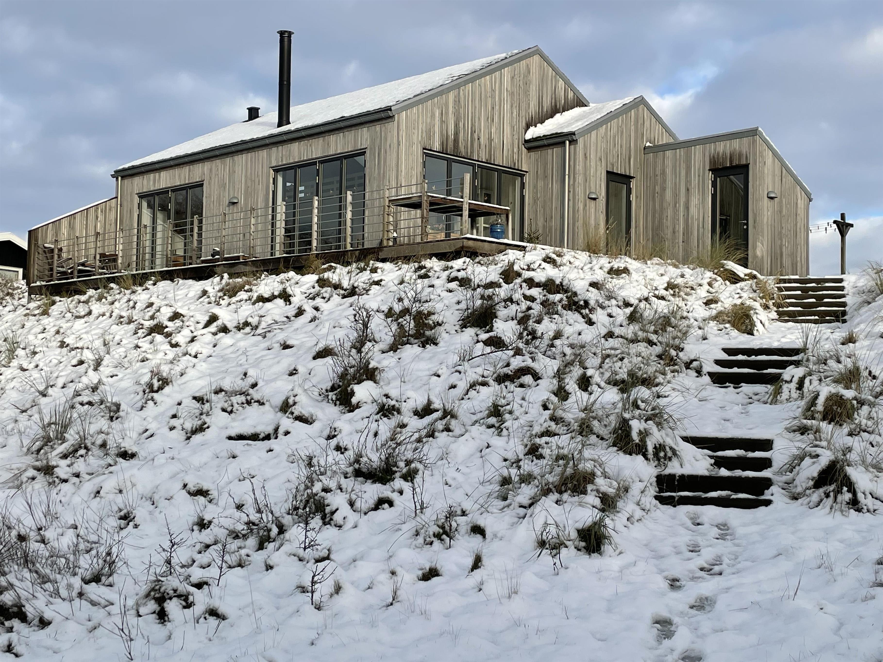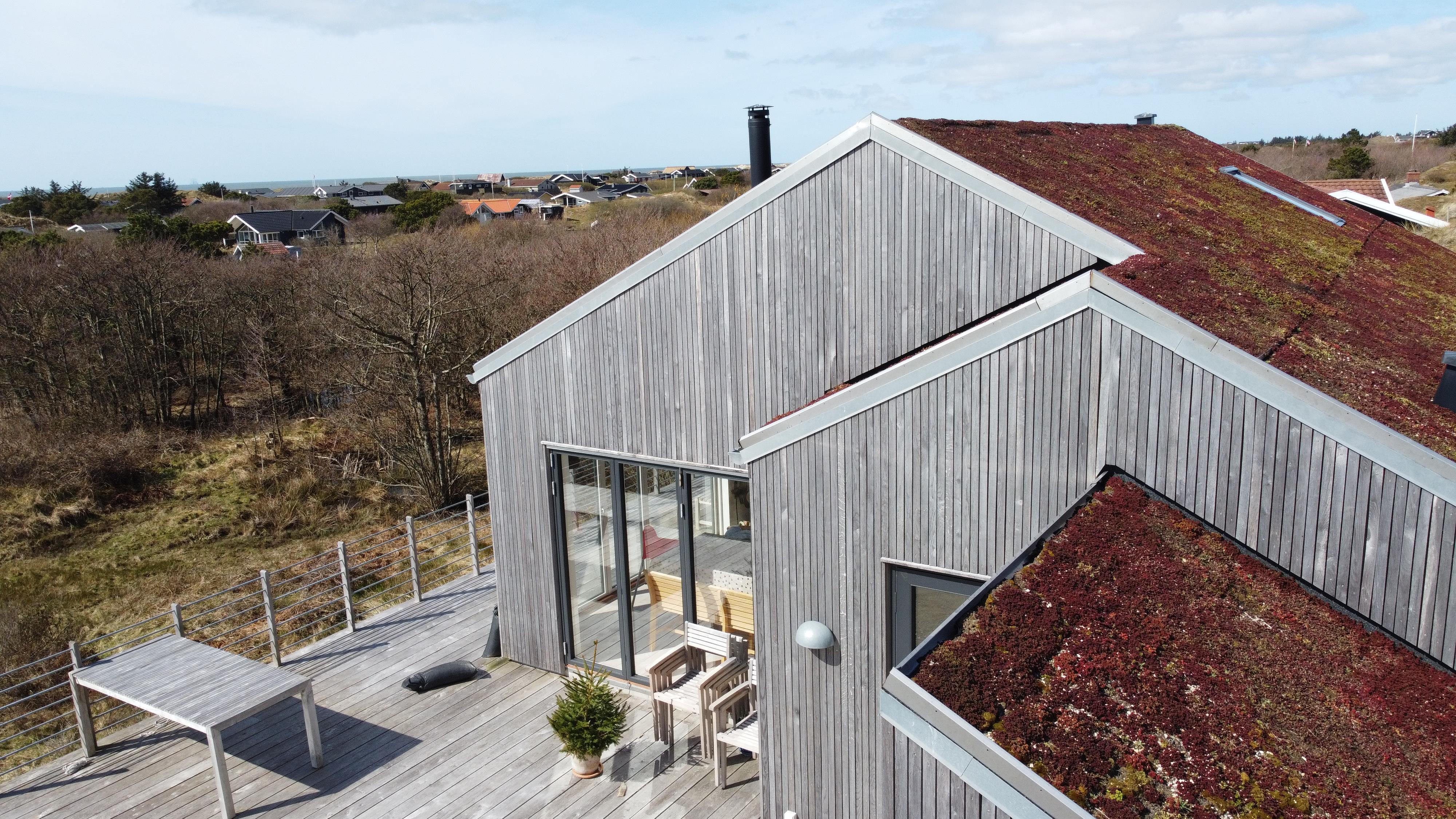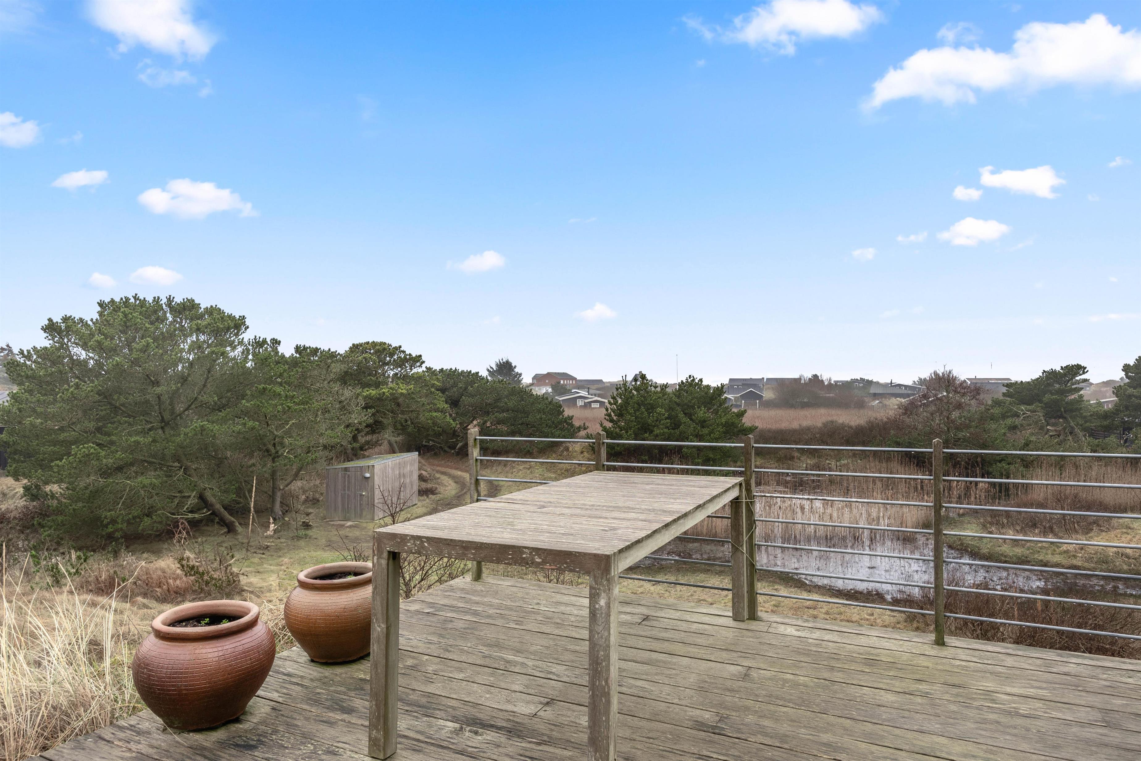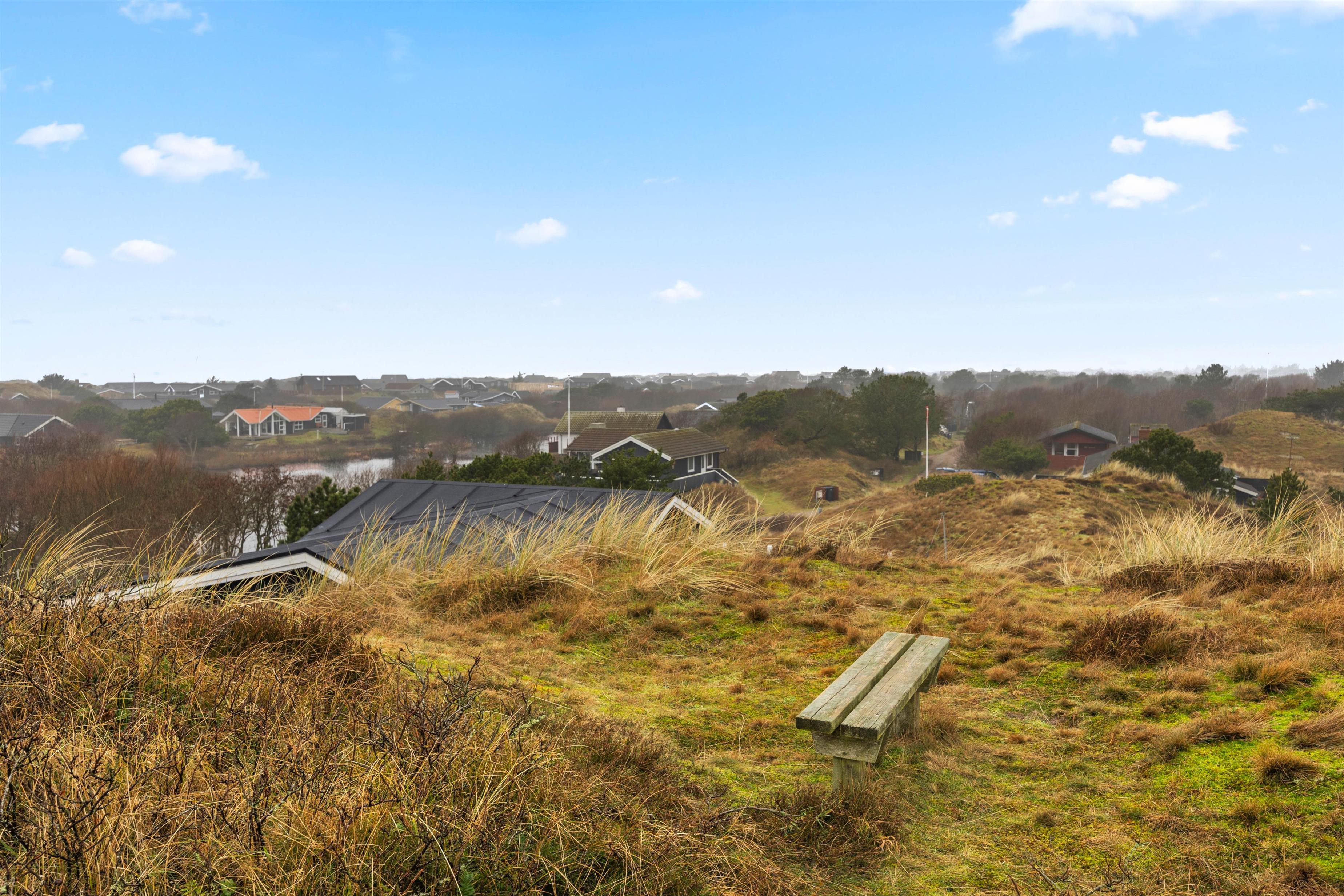 Sommerhuset ligger på en ca. 3.000 m² stor klitgrund, hvorfra I kan nyde en fantastisk panoramaudsigt. Den åbne terrasse med havemøbler og liggestole indbyder til afslapning. Her kan I solbade, holde hyggelige grillaftener eller nyde morgenkaffen i den friske, salte havluft.