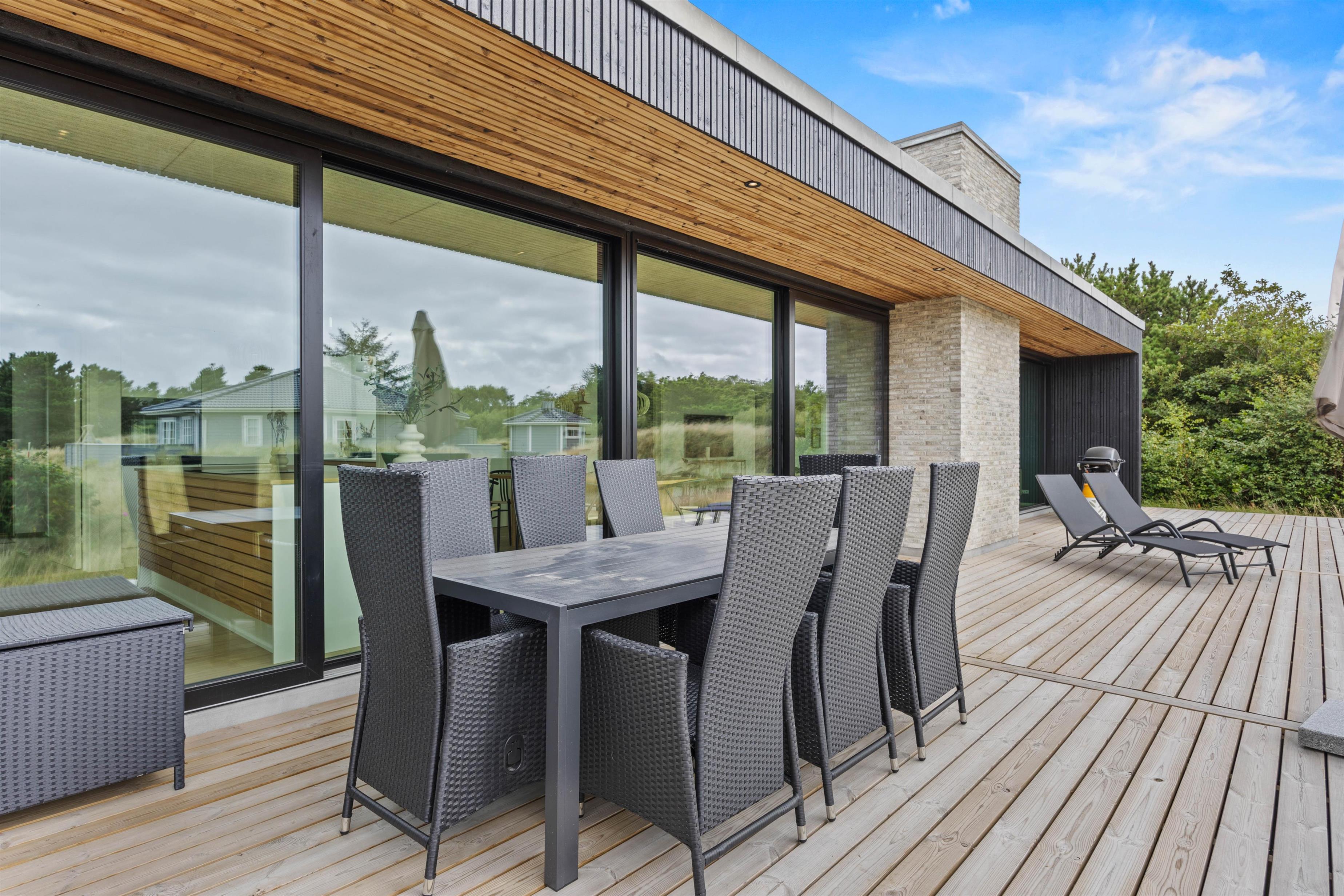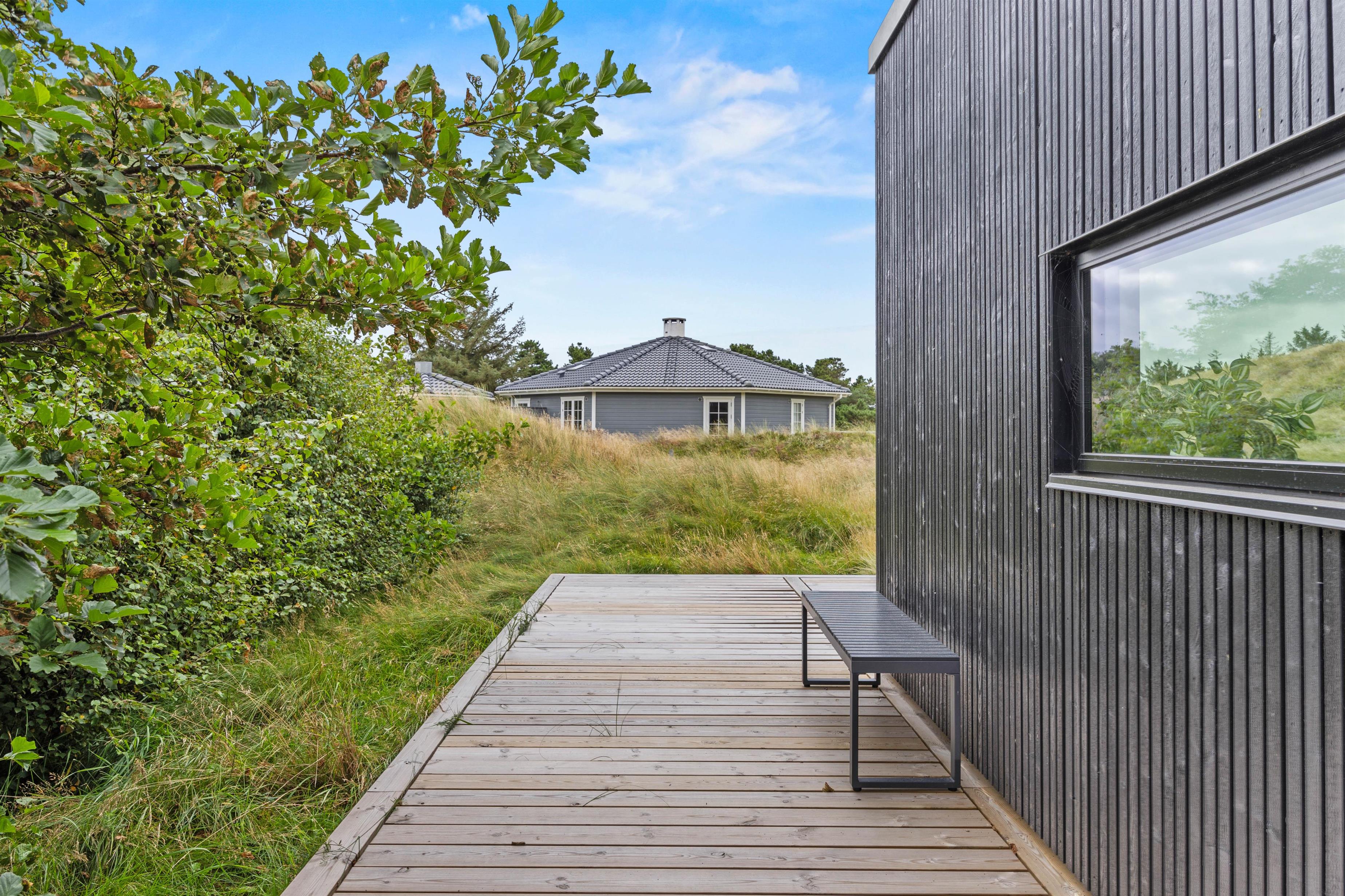 På den åbne terrasse kan I solbade eller nyde udsigten over naturgrunden med en kop kaffe. Med kun 750 meter til Vesterhavet og 300 meter til de nærmeste indkøbsmuligheder, giver dette sommerhus jer den perfekte balance mellem natur og bekvemmelighed. Den flotte beliggenhed i Rindby gør det muligt at nyde den friske havluft, mens I let kan købe ind til dagens måltider.