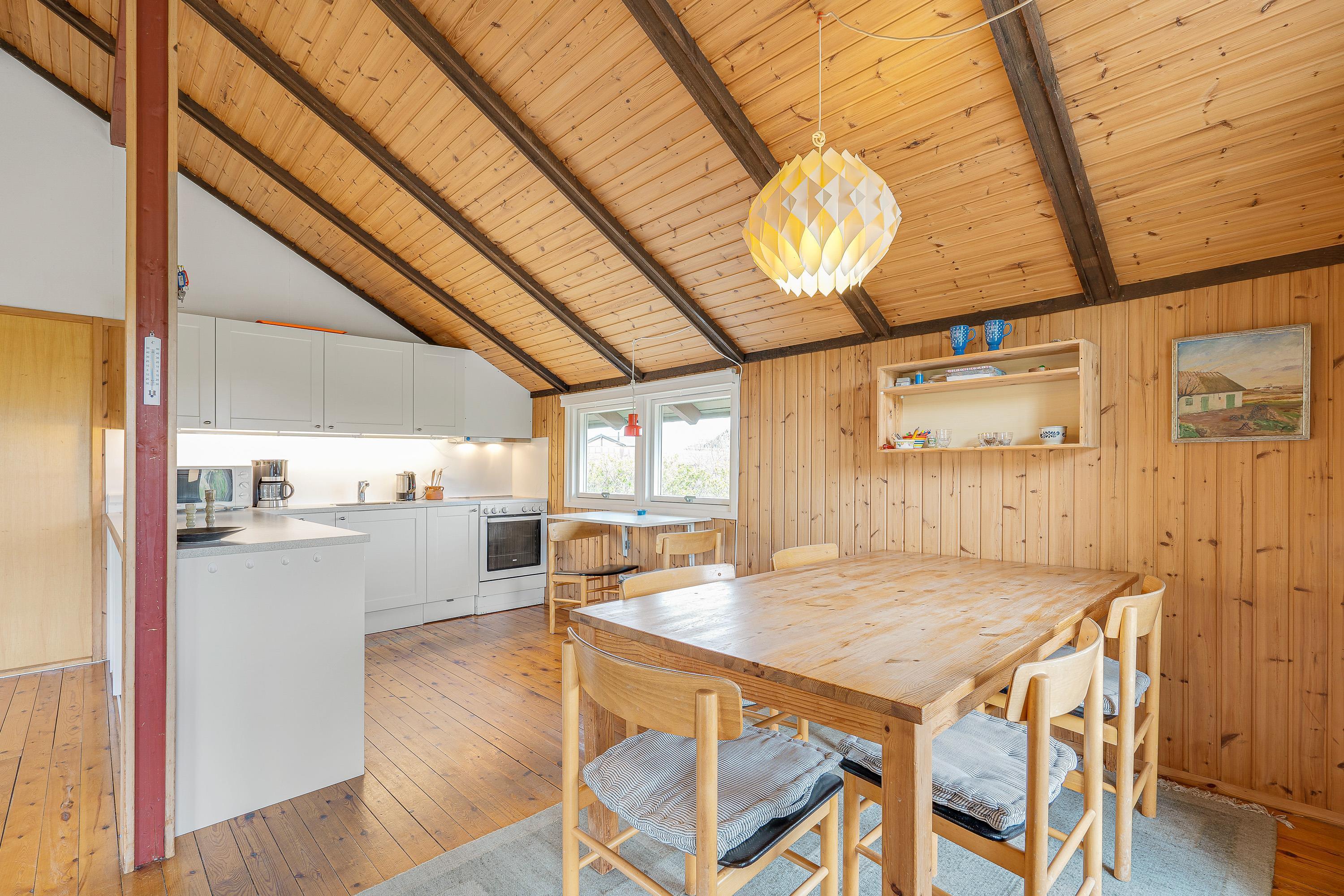 I dette sommerhus, på Hasidvej 29 i Rindby Strand, får I den perfekte oase til en ferie for den lille familie. Feriehuset indeholder stue, spiseplads og et veludstyret køkken, der nænsomt er forenet og sammen danner base for en afslappende ferie i hyggens tegn. Læn jer tilbage i de komfortable møbler og se en god film på TV, eller snup et slag brætspil omkring spisebordet.