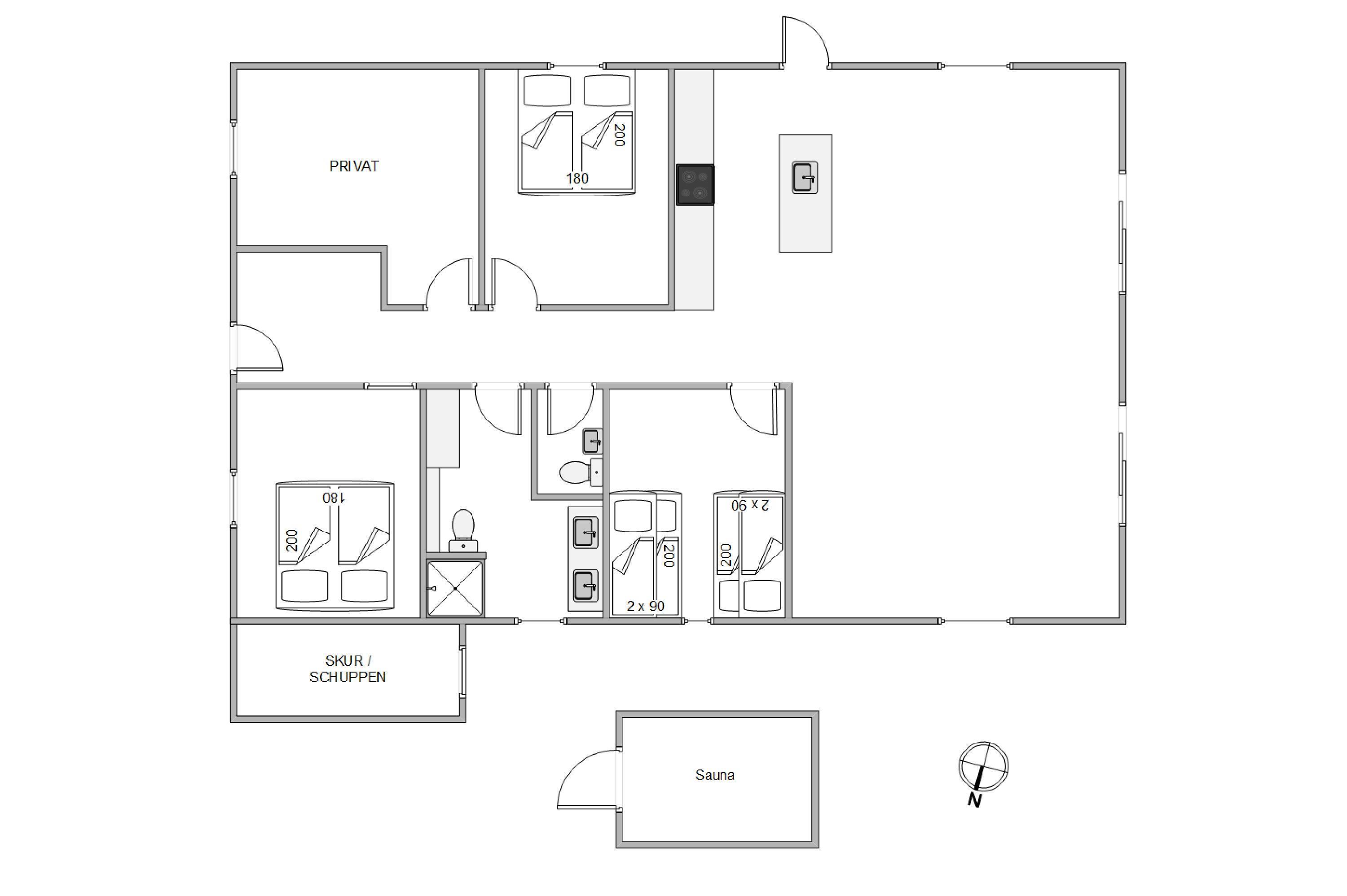 Det rummelige og lyst indrettede feriehus er ideelt at holde ferie i for den store familie eller vennegruppen. Her er højt til loftet, og de tre soverum er indrettet med to dobbeltsenge og to køjesenge. Feriehuset er generelt praktisk og lækkert indrettet med både et badeværelse og et gæstetoilet. Begge med varme i gulvet.
