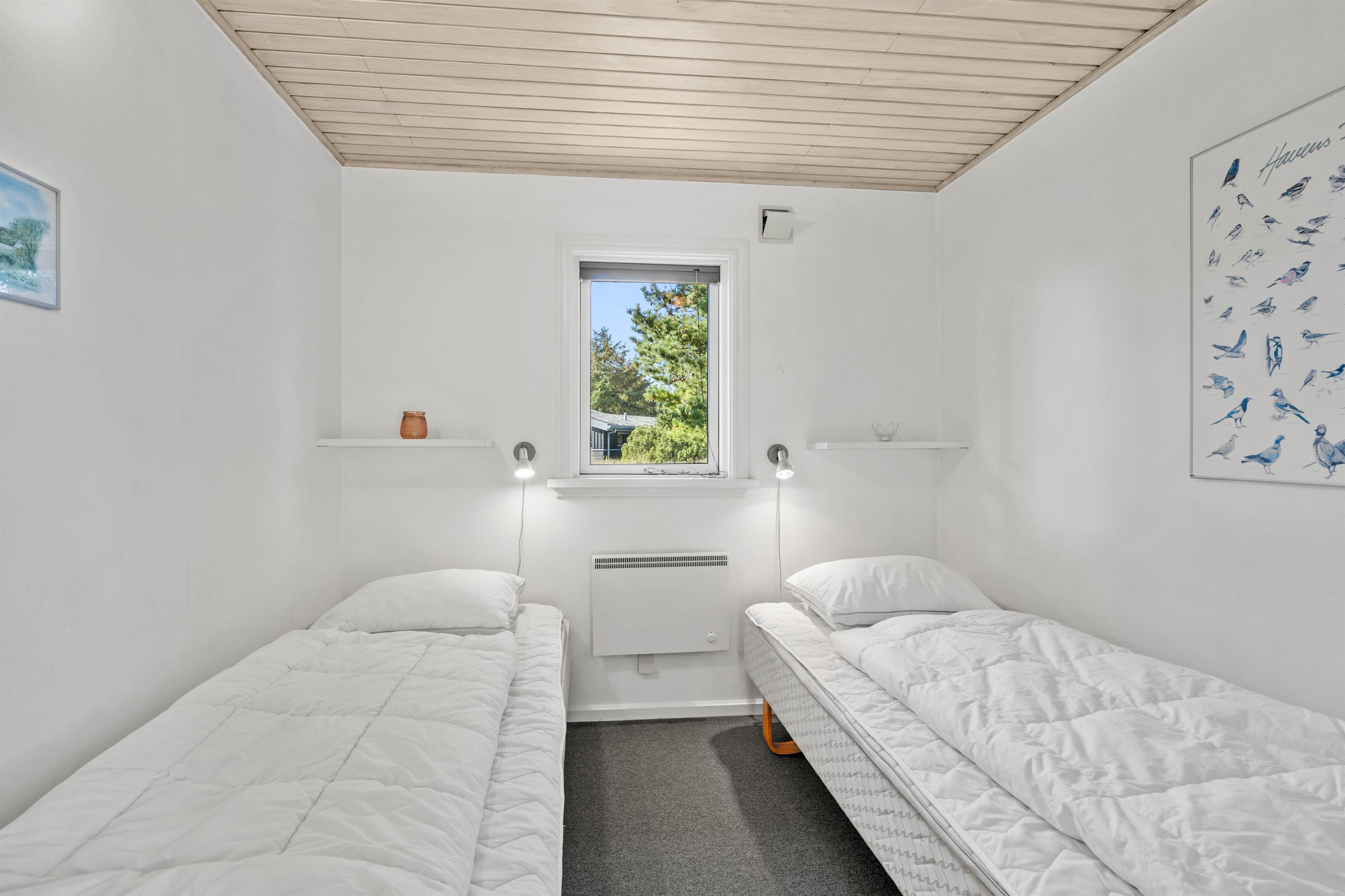 Sommerhuset har 3 soverum med 6 komfortable sengepladser - 1 med dobbeltseng og 2 med hver 2 enkeltsenge, hvilket giver god plads til en familie eller vennegruppe. Slutrengøring er inkluderet i dette sommerhus, så I kan nyde jeres ferie her til sidste minut.