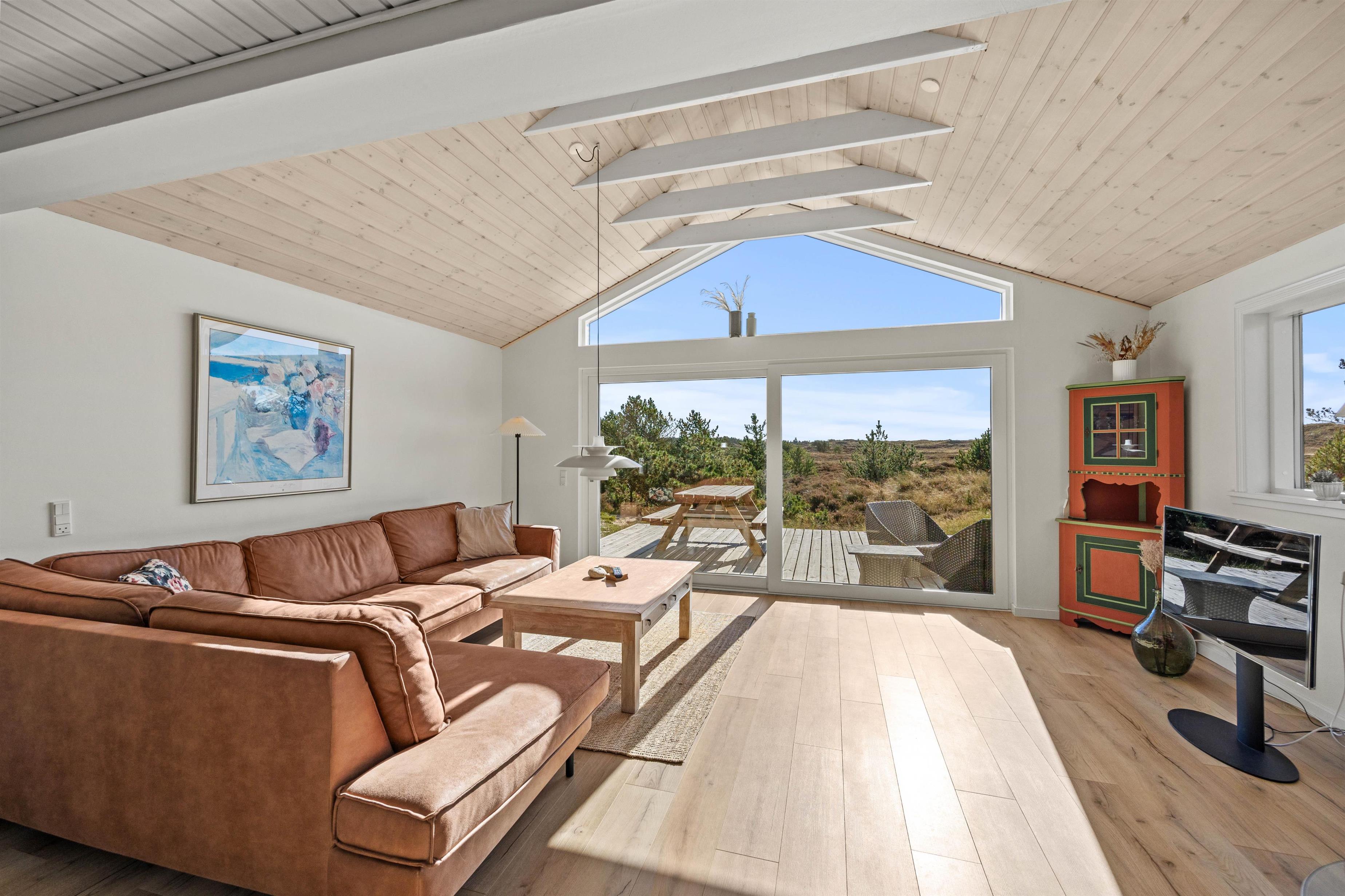 Man mærker feriestemningen straks, man træder ind ad døren til Hedetoften 6 i Rindby. De i alt 95 kvadratmeter er hyggeligt indrettet med blandt andet brændeovn til en ekstra varm og hyggelig stemning på køligere aftener. Den indbyggede luft til luft varmepumpe sikrer et behageligt indeklima året rundt.