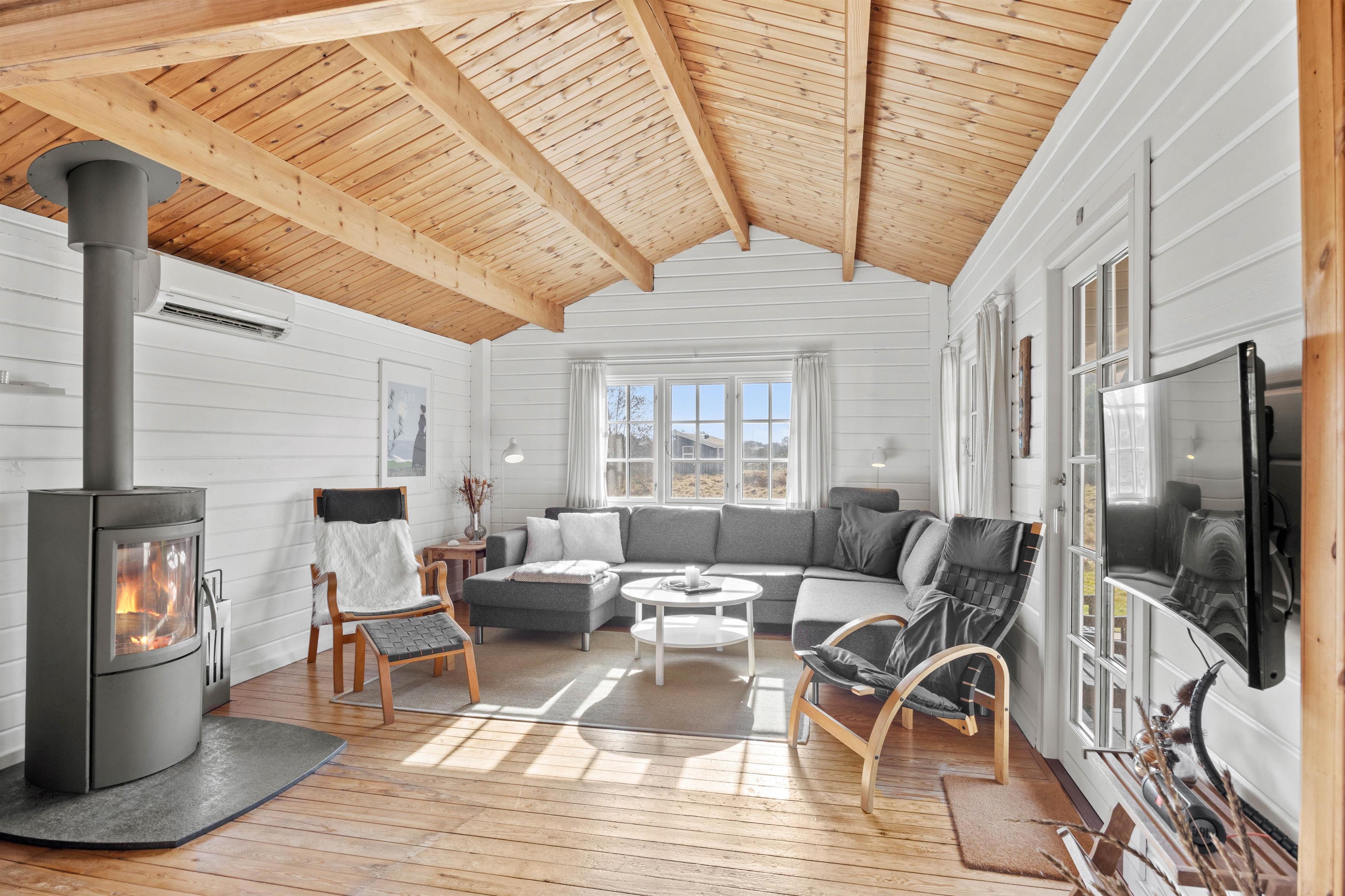 Sommerhuset byder på en skøn opholdsstue med en dejlig atmosfære, hvor I kan samle jer til hyggelige stunder. Efter en dag fuld af oplevelser kan I slappe af med en god bog, se en film eller blot nyde roen.