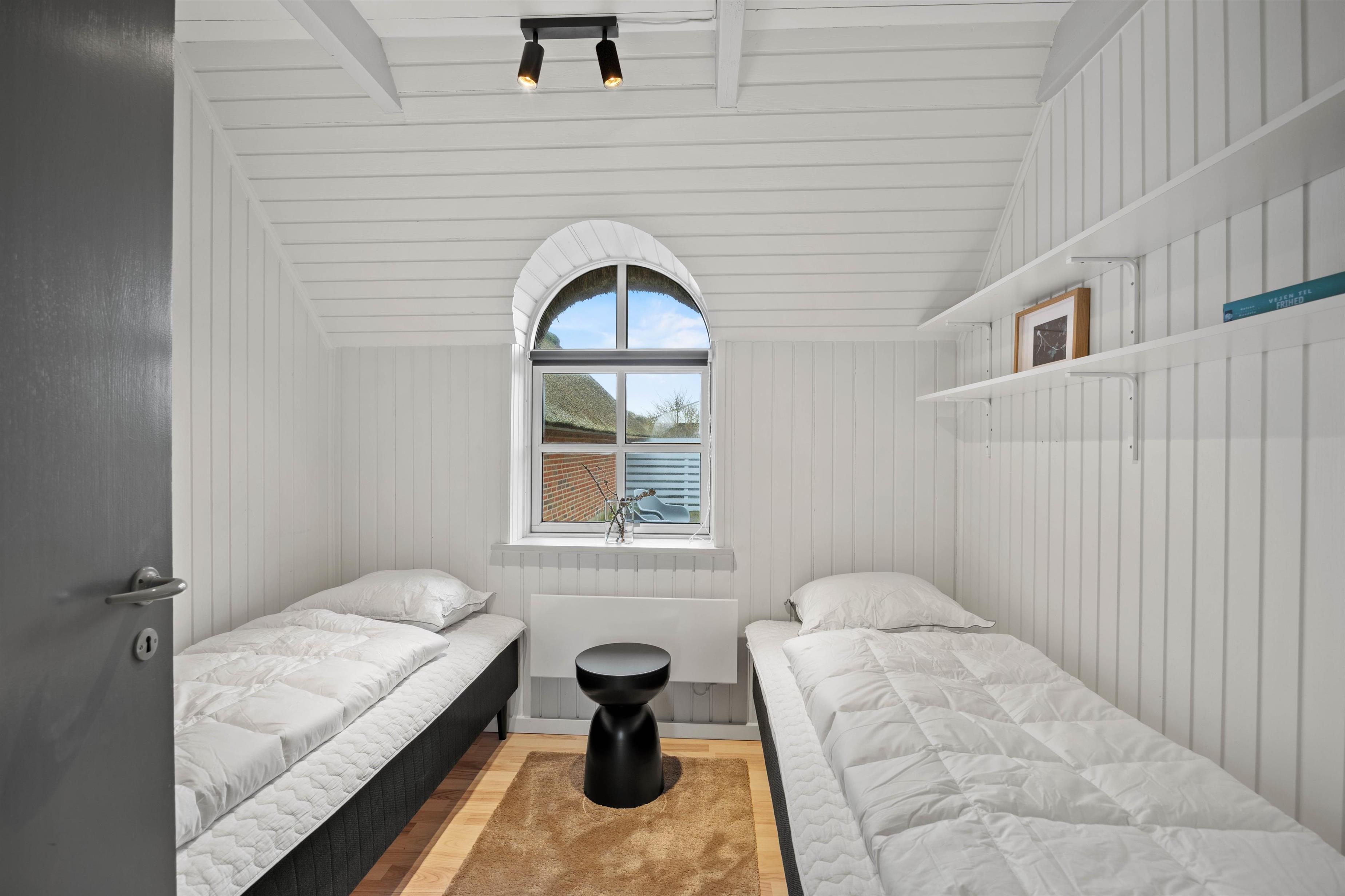 Soveværelserne er lyse, indbydende og praktisk indrettet. Der er 1 soveværelse med dobbeltseng samt 2 værelser med enkeltsenge – så alle har deres egen hyggelige lille base.