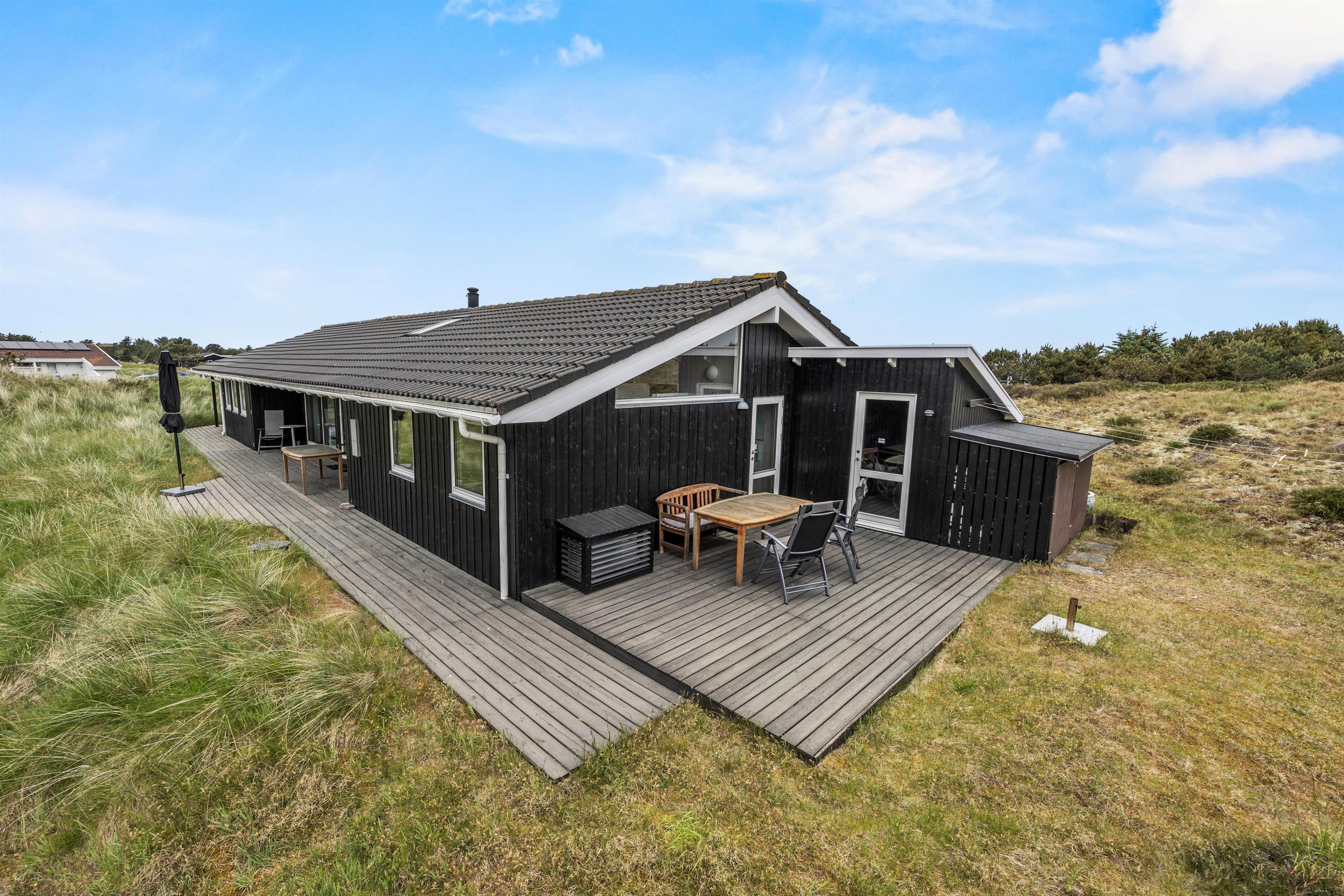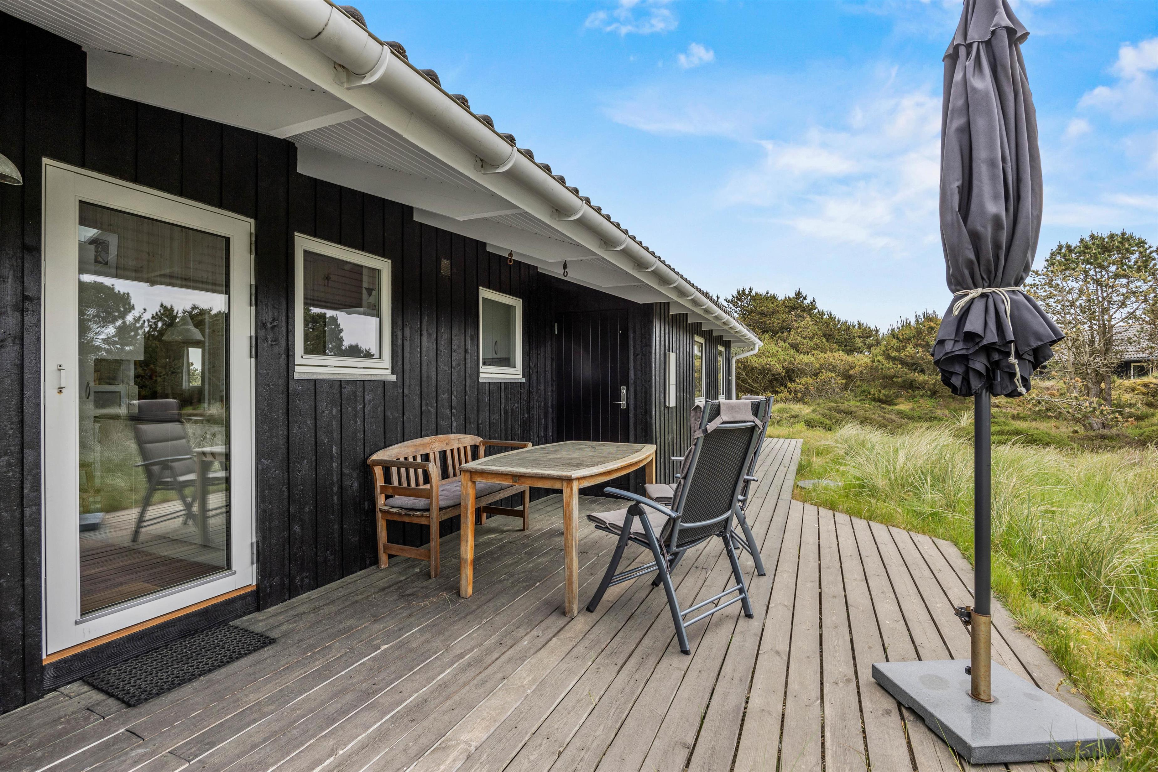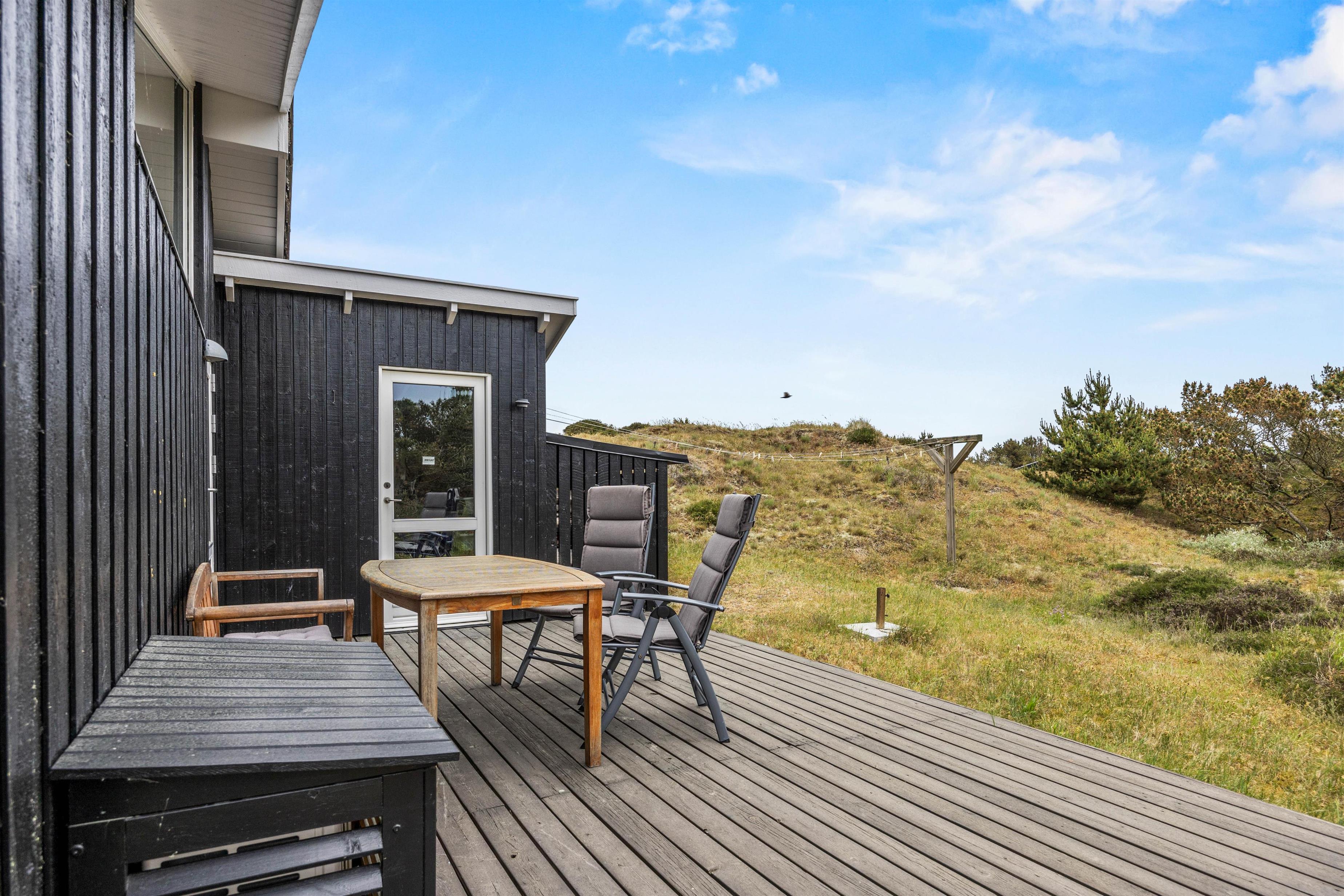 Træd udenfor på den indbydende terrasse og lad jer betage af den skønne natur, der omgiver feriehuset. Terrassen er det perfekte sted at nyde morgenkaffen i solens stråler eller tilbringe aftener i godt selskab under stjernernes skær. Med havemøbler og en grill til rådighed er der rig mulighed for udendørs hygge og lækre måltider i det fri. Den omkringliggende naturgrund byder på masser af plads til leg og afslapning for både børn og voksne. Lad jer fordybe i de skønne omgivelser og nyd den friske luft, mens I lytter til fuglenes sang og lader tankerne flyve frit. Uanset om I foretrækker at slappe af med en god bog, lege med børnene eller bare nyde roen, vil terrassen og naturgrunden være jeres private oase på Fanø.