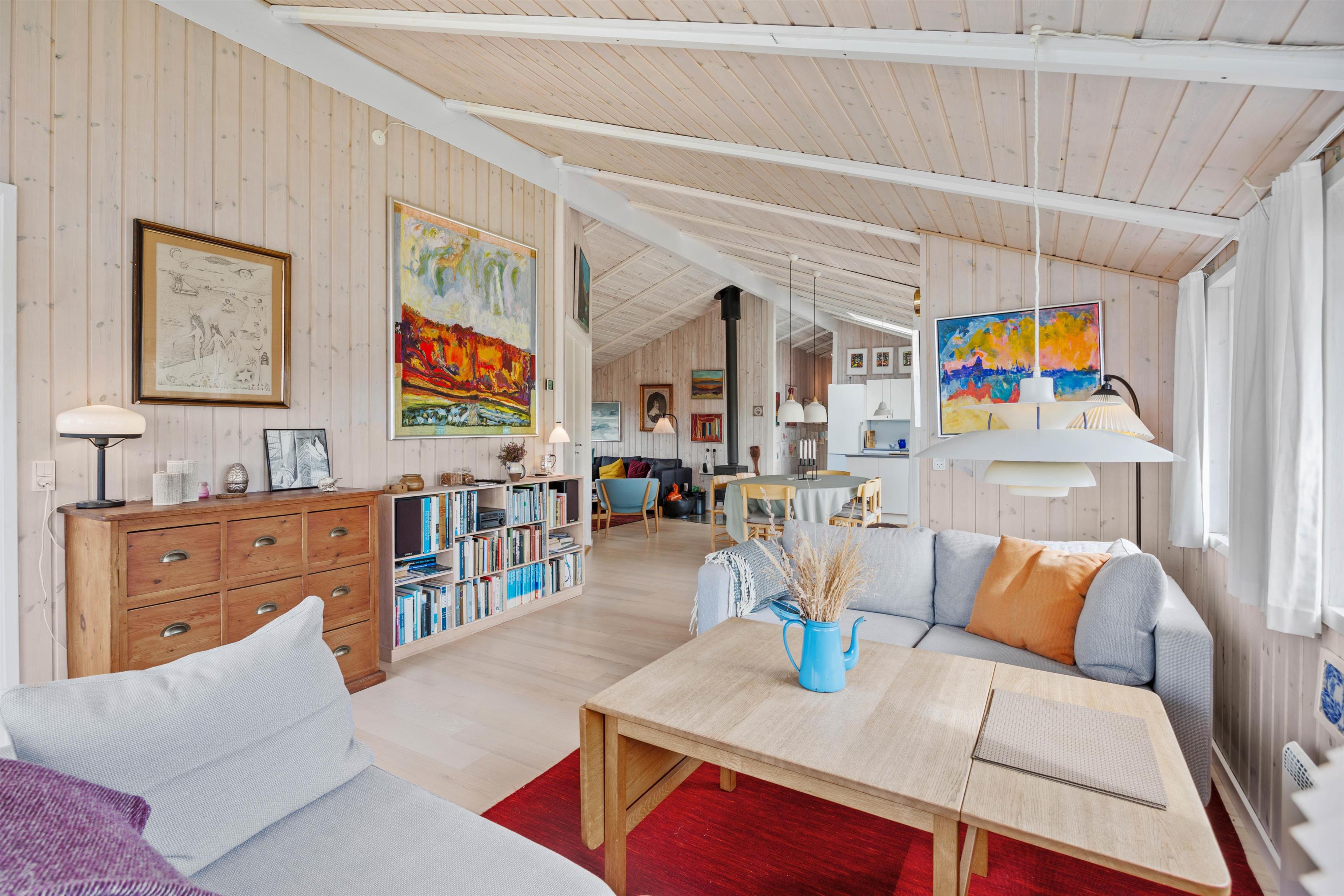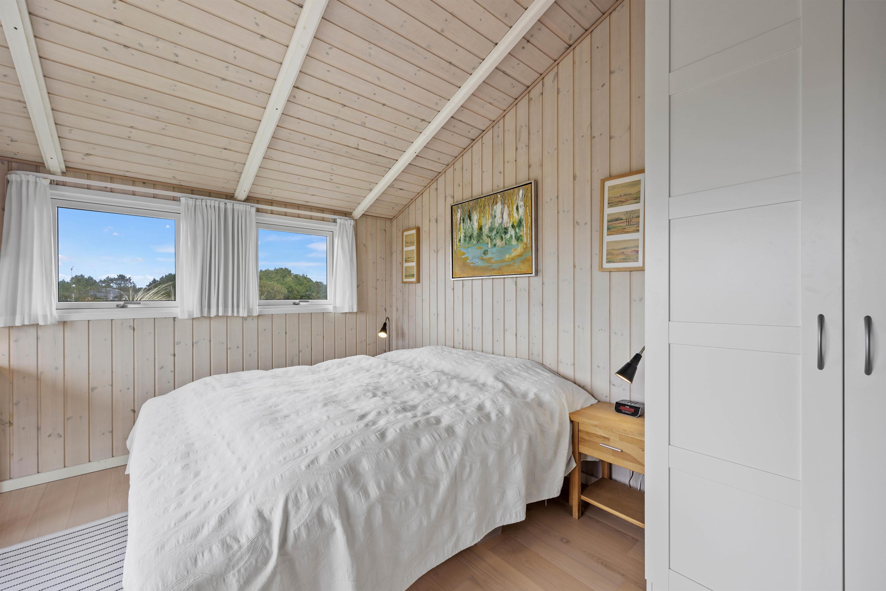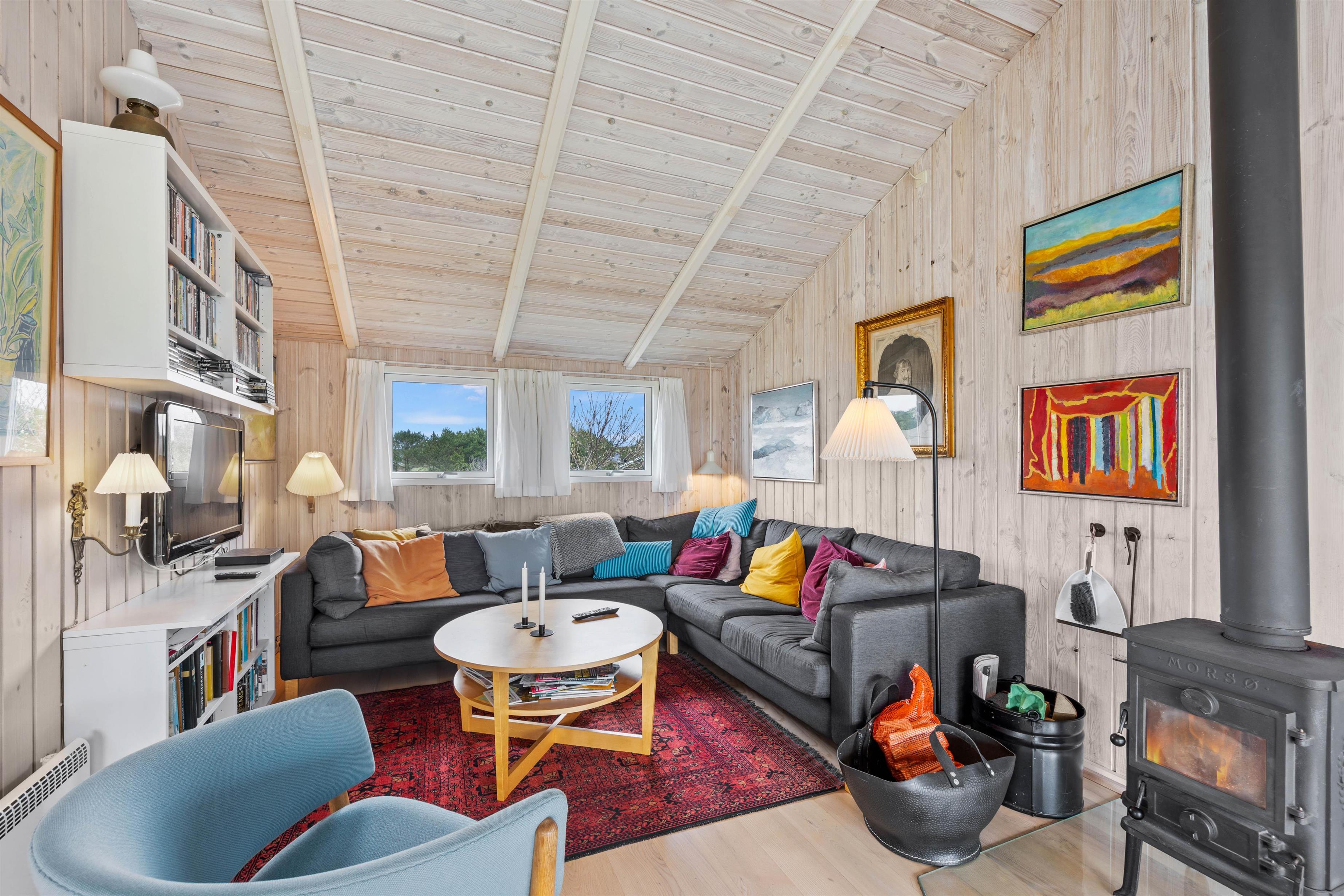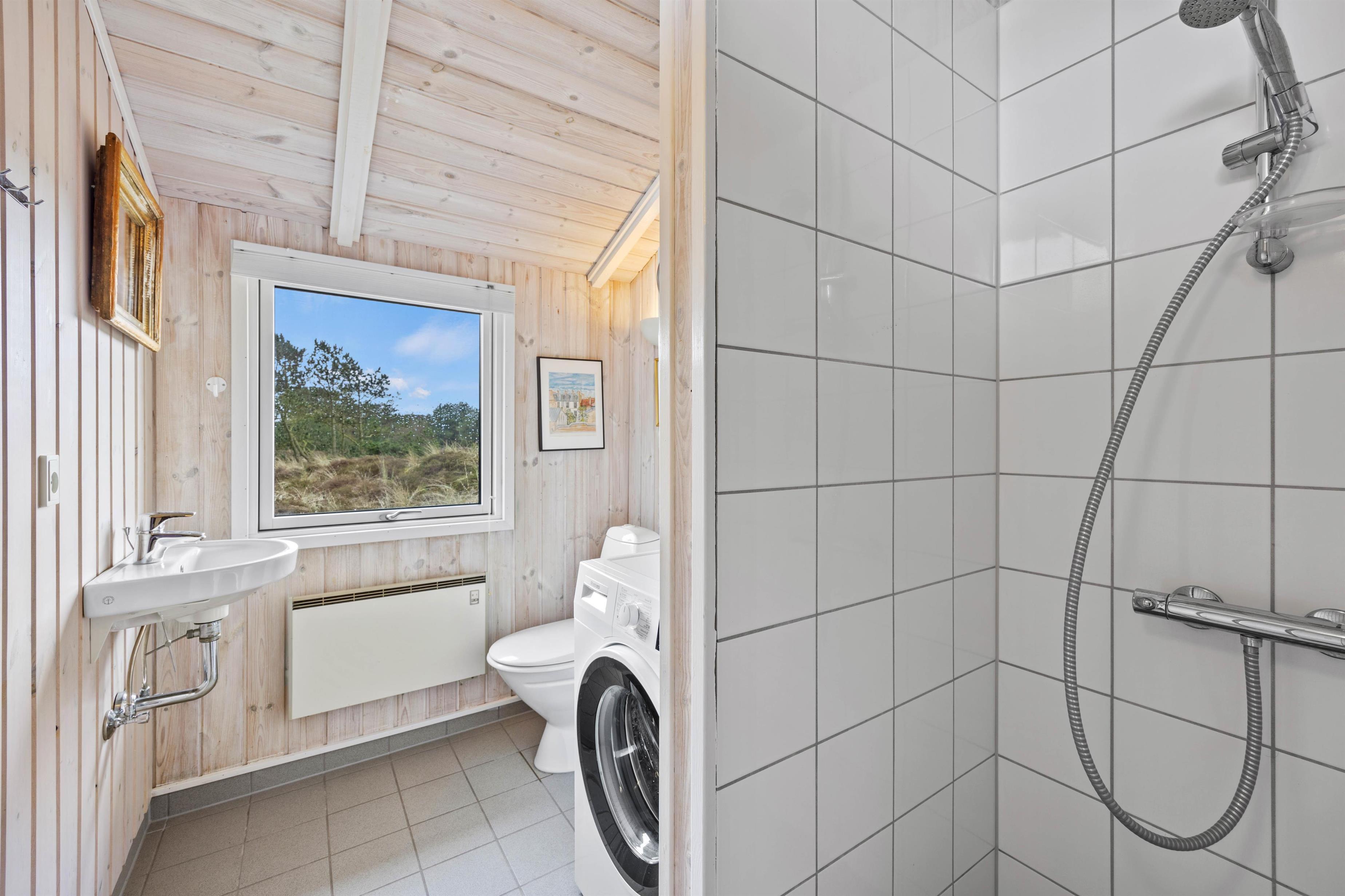 Træd ind i feriehuset og mærk straks den lyse indretning og hyggelige atmosfære sprede feriestemning. Den rummelige stue byder jer velkommen med en brændeovn, perfekt til kølige aftener og hyggelige stunder sammen. Med 3 smagfuldt indrettede soveværelser, alle udstyret med komfortable dobbeltsenge, samt 2 rummelige badeværelser med gulvvarme, er der rigeligt med plads til hele familien eller vennerne på feriehusets 138 velindrettede kvadratmeter. For at sikre jer en behagelig og bekvem ferieoplevelse er feriehuset udstyret med moderne faciliteter, herunder en opvaskemaskine, vaskemaskine og tørretumbler. Den omkostnings- og energibesparende varmepumpe sørger for behagelige temperaturer i feriehuset.