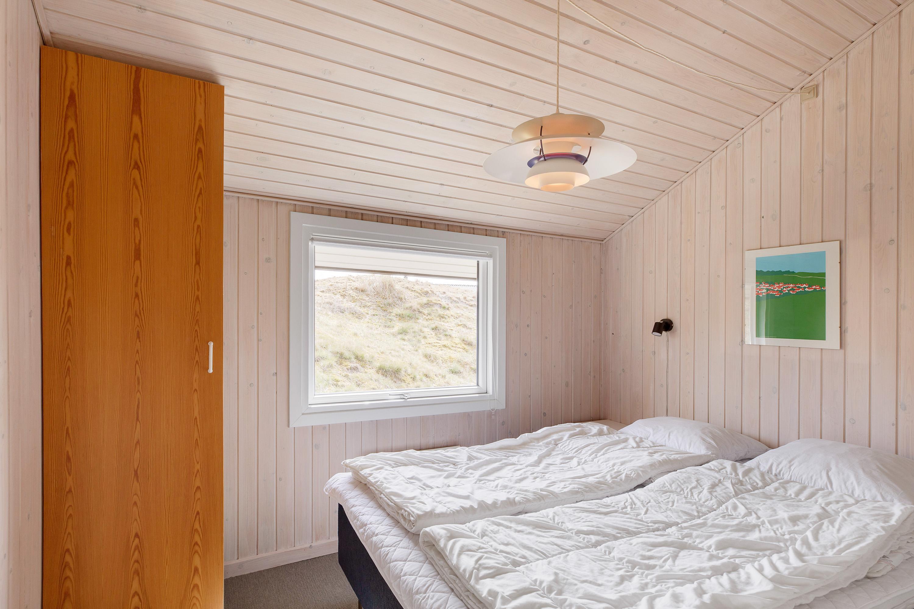 Efter en dejlig feriedag er det tid til at gå til køjs, og her har I 3 gode soveværelser, I kan søge mod. 2 af soveværelserne har en dobbeltseng hver, mens det tredje soveværelse er indrettet med en køjeseng. Derudover rummer sommerhuset 1 badeværelse, der er udstyret med gulvvarme, så ingen skal fryse fødderne fra morgenstunden.