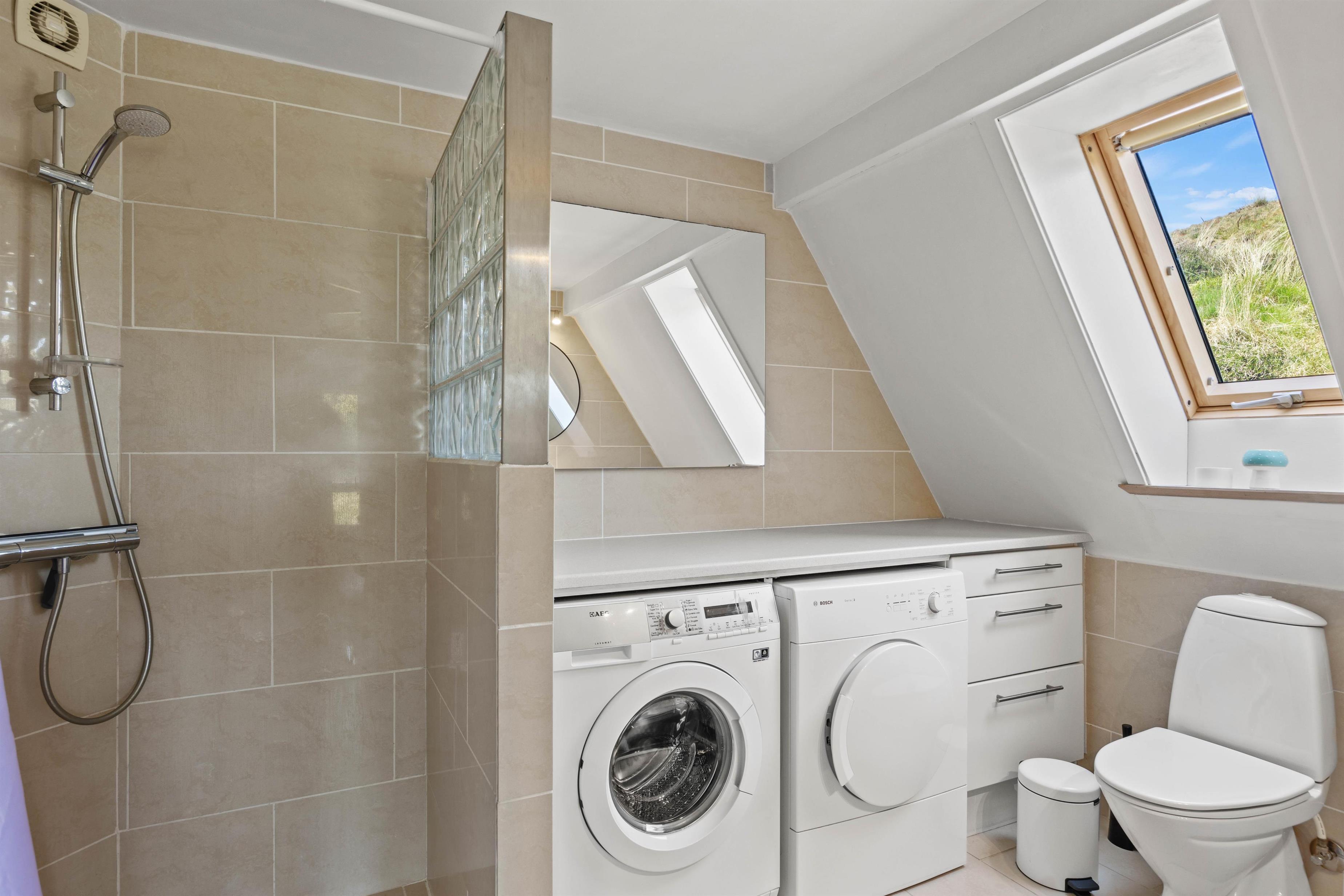 Badeværelset fuldender komforten med gulvvarme, som gør det ekstra rart at starte eller afslutte dagen her.
