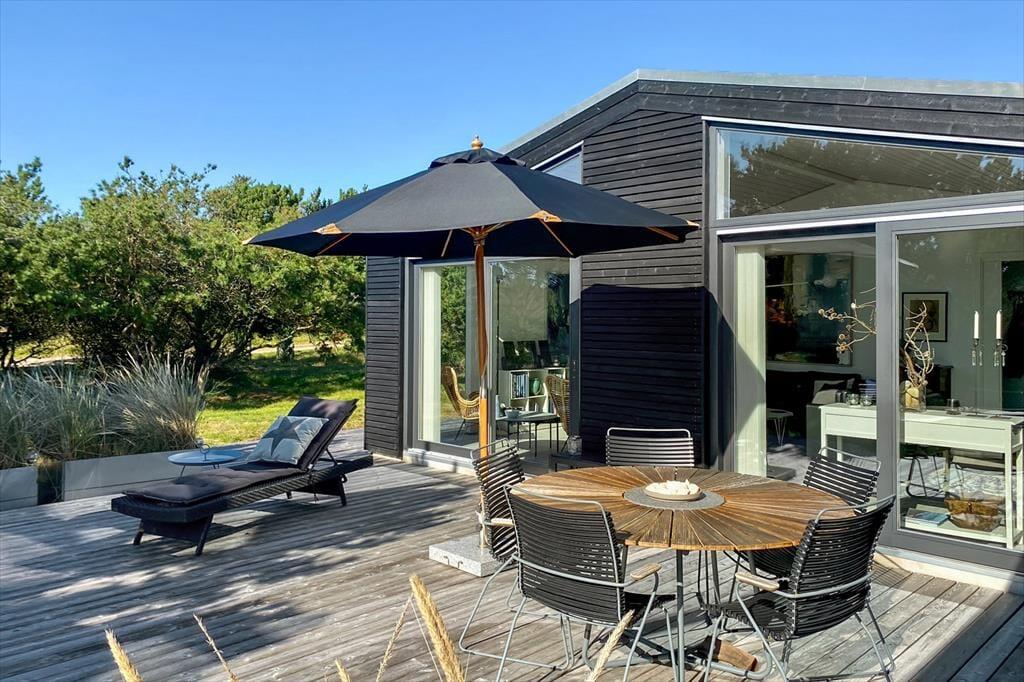 I det naturskønne område Nyby tæt på Rindby Strand står dette elegante sommerhus klar til at byde dig velkommen til en skøn Fanø-ferie. Huset er et vaskeægte kvalitetssommerhus med et væld af lækre detaljer og et lysindfald, der er ud over det sædvanlige – og i samme stil fungerer den store træterrasse som en fredfyldt oase, når du vil være ude i det fri.