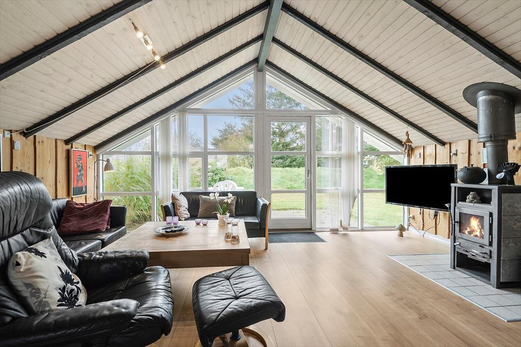 Inden døre bliver du budt velkommen i de hyggelige og velindrettede rum. På klassisk manér er der loft til kip og rustik træbeklædning på væggene, mens gulvet er udskiftet i 2021 som en af husets moderne forbedringer. Det åbne køkken og stuen udgør tilsammen husets hjerte, hvor du kan samles med familien til fælles madlavning, gode middage og hyggestunder nær brændeovnen. Planløsningen byder på to komfortable soveværelser, hvor I kan se frem til at sove både godt og længe. Brusebadeværelset har en pæn og praktisk indretning, og alt i alt sørger de mange gode detaljer i huset for en hjemlig og afslappet atmosfære, der passer perfekt til ferielivet.