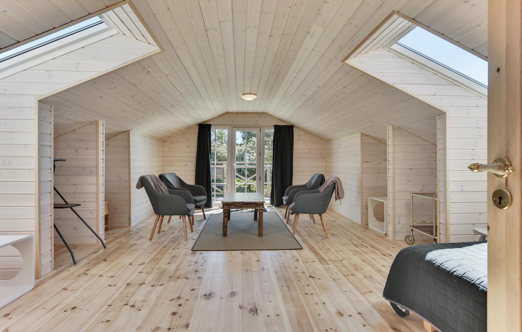 Der er klinkegulve i stueplan og trægulve på første sal. To af husets 10 sovepladser er i stuen på første sal.