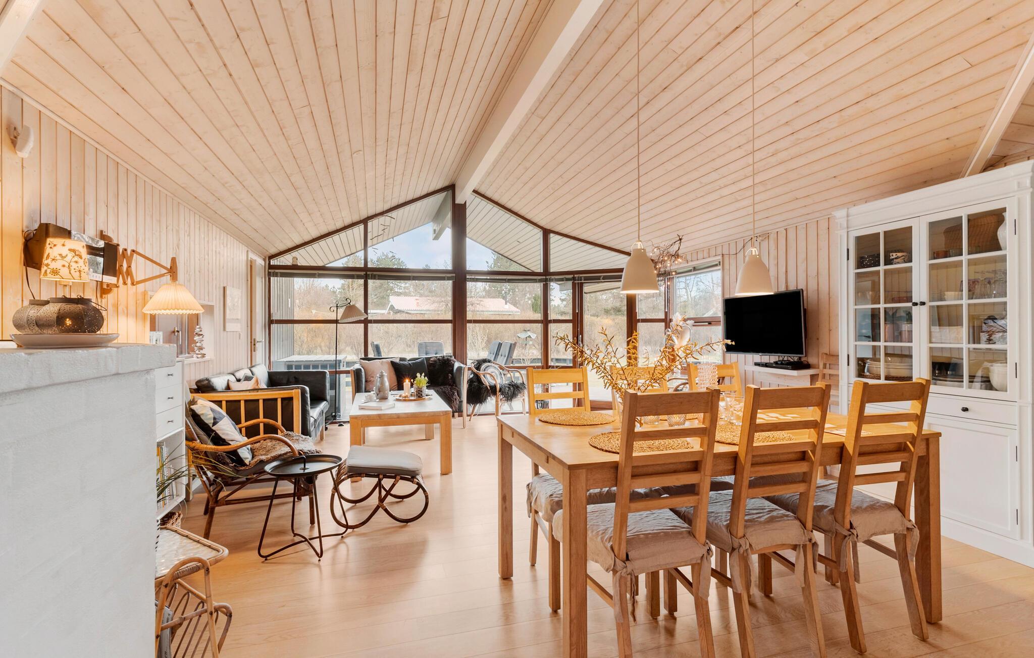 Velkommen til dette flotte hus, der ligger i rolige omgivelser ved Ristinge, hvor der er lagt op til nogle dejlige uger med den større familie. Huset er godt indrettet med mange sengepladser, og med sit indbydende træ-interiør får I her alt, I behøver for at kunne slappe af uden de store bekymringer. Husets hjerte er den åbne opholdsstue med højt til loftet, et dejligt lysindfald og en god udsigt, der kan nydes, hvad end I laver mad i køkkenet, dækker op ved spisebordet eller læser en bog i sofaen. Skal I gøre det ekstra godt for jer selv, kan I lade aftenen gå på hæld med en svedetur i saunaen eller i spabadet for lidt ekstra wellness.