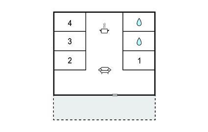 Badeværelse (nr. 2) - WC. Varmt og koldt vand. Bruser