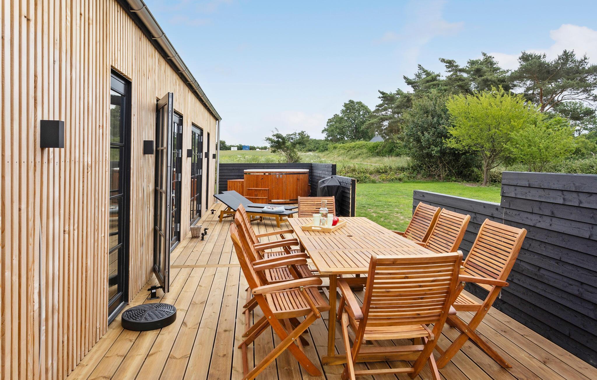 Den solrige terrasse er også perfekt til at nyde afslappende timer udendørs med en større gruppe. Lad børnene løbe frit rundt på den velholdte naturgrund, mens I forkæler jer selv med afslappende øjeblikke i spabadet og fyrer op i grillen på de lune sommeraftener.