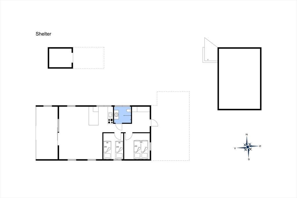 På begge sider af sommerhus er der dejlige terrasser, så når solen lokker dig udenfor, skal du vælge, om du vil sidde mod øst eller vest. På østterrassen kan du sidde under åben himmel, men dog lidt skærmet af et læhegn, mens terrassen mod vest er overdækket og har et fint kig ud over den grønne have. Ved shelteret er der også en hyggelig opholdsplads – endda med et lille bålsted – og takket være udebruseren kan selv morgenbadet foregå her i havens grønne omgivelser. Til børnene står der en trampolin, og græsplænen passer perfekt til vikingespil og andre sjove havelege.