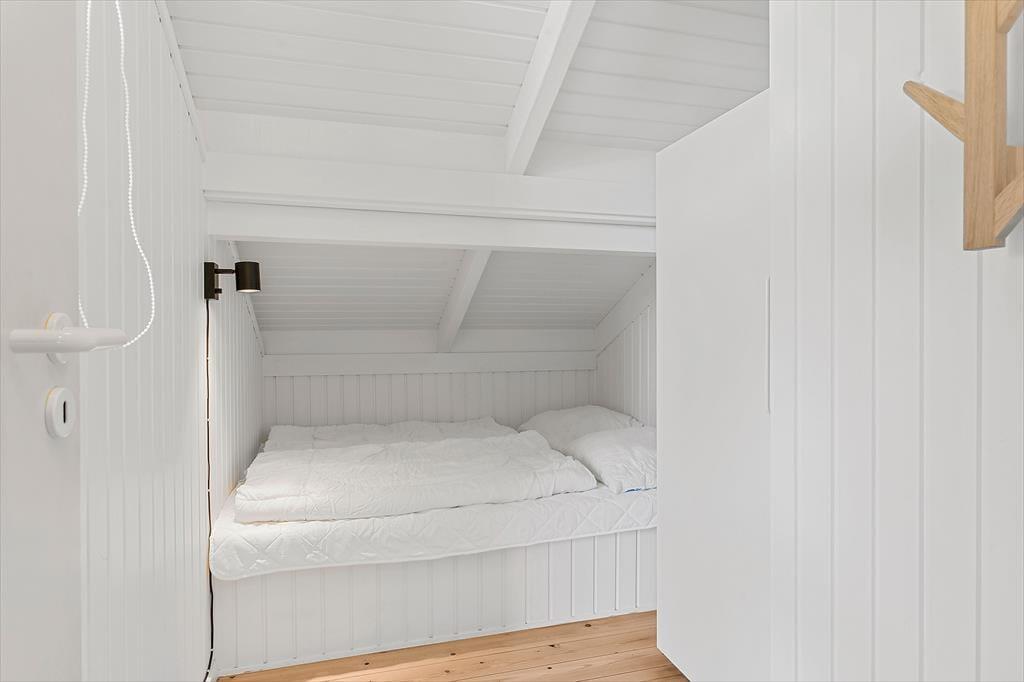 Indenfor mødes du af en velholdt og hyggelig indretning, hvor charmerende detaljer og en god atmosfære skaber de perfekte rammer for et afslappet ophold. Sommerhuset er niveauopdelt, hvilket giver en spændende og funktionel indretning. Køkkenet og spiseafdelingen ligger først i huset og giver adgang til den hyggelige stue, hvor du kan træde ned og finde dig til rette i de komfortable møbler. Her er der alle muligheder for at slappe af efter en lang dag, enten foran den knitrende brændeovn eller mens du ser ud på den smukke natur gennem de store vinduespartier. De gode soveværelser giver plads til hvile og ro, og badeværelserne er både pæne og praktiske. Husets velindrettede rum og det gode lysindfald gør, at du hurtigt føler dig hjemme.