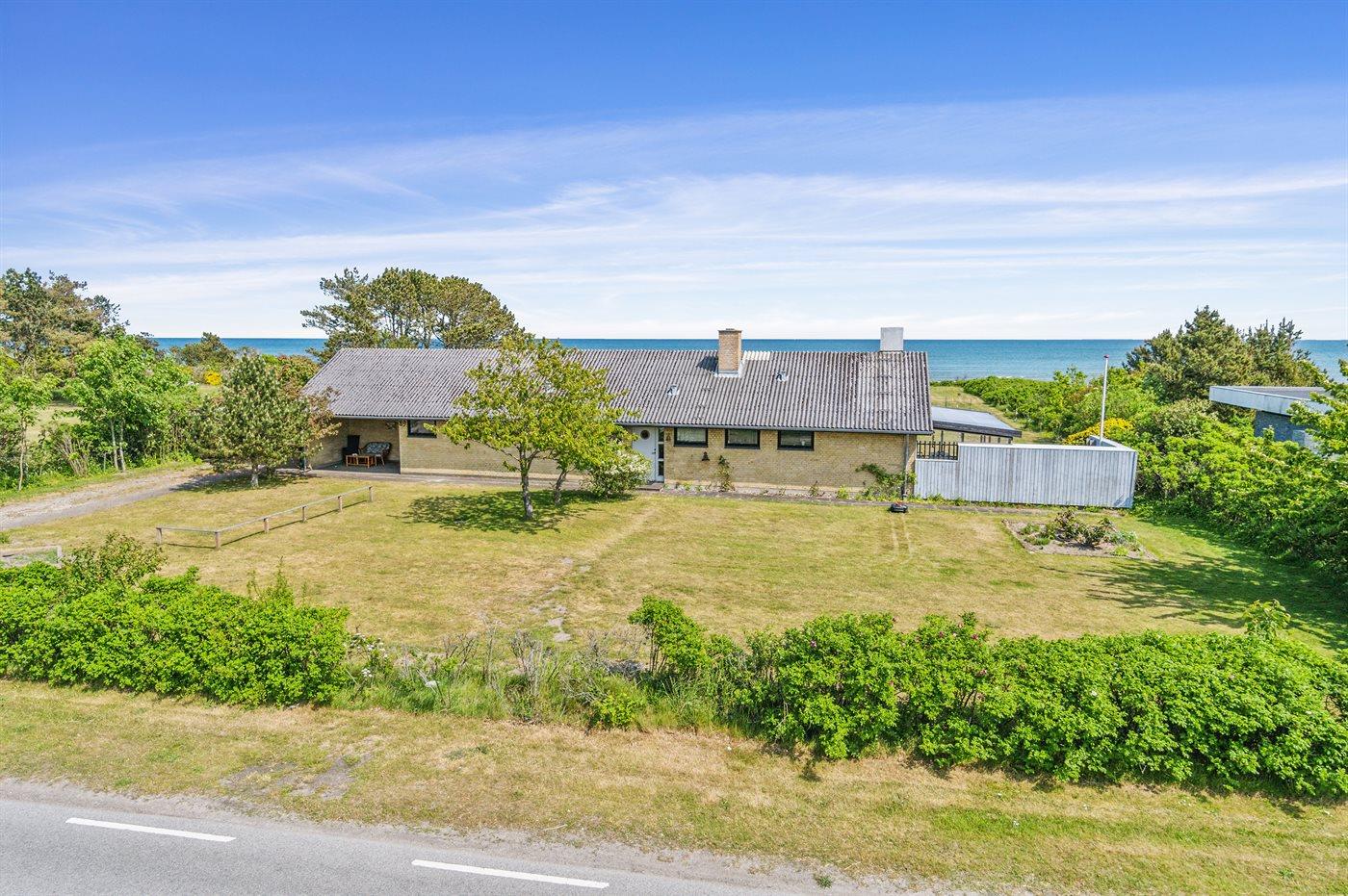 Dette skønne og velholdte sommerhus er beliggende med en eminent udsigt, som ikke findes bedre. Her kan man virkelig tale om at holde ferie et stenkast fra havet. Der er 180 graders panoramaudsigt hvad enten man boltrer sig på den store naturgrund, sidder på den hyggelige terrasse eller opholder sig inde i sommerhuset.