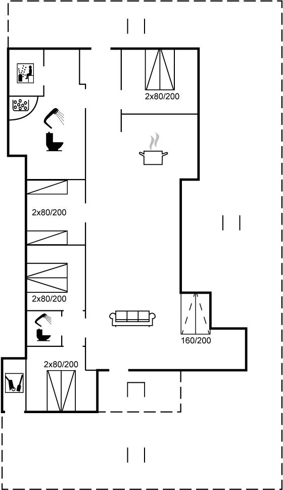 Der er i alt 4 soveværelser. Sovepladserne fordeler sig på: 6 sovepladser i dobbeltsenge. 2 sovepladser i enkeltsenge. 2 sovepladser i sovesofa (dobbelt). 2 af disse sovepladser befinder sig i stuen.