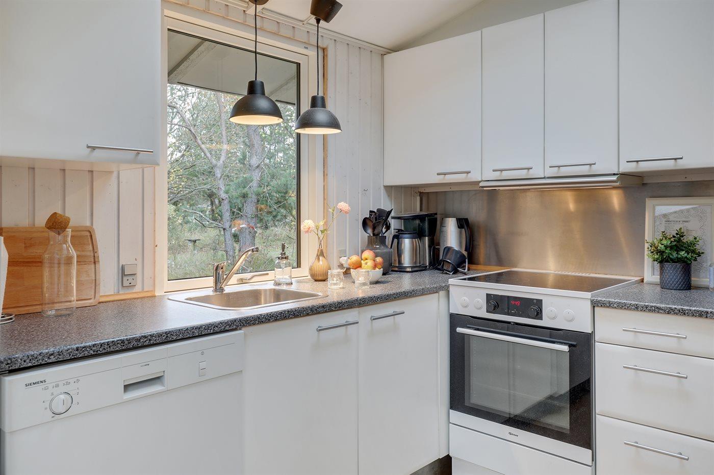Køkkenet er udstyret med 1 køleskab. Der er 4 keramiske kogeplader, varmluftovn, mikrobølgeovn samt opvaskemaskine.