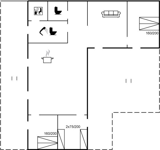Der er i alt 3 soveværelser. Sovepladserne fordeler sig på: 4 sovepladser i dobbeltsenge. 2 sovepladser i enkeltsenge.