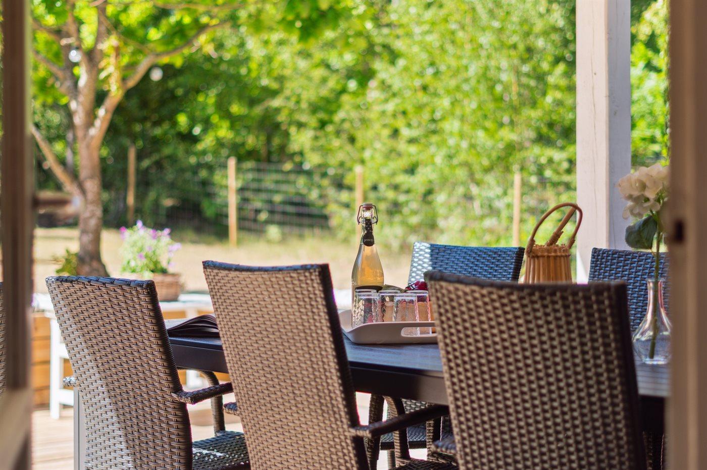 Ferieboligen er beliggende på en 1194 m² stor naturgrund. Der er 350 m til havet. Nærmeste forretning er beliggende i en afstand af 3000 m. Der er en golfbane i en afstand af 4500 m. Til ferieboligen hører 60 m² terrasseareal. Desuden er der 14 m² overdækket terrasse. Grill til rådighed. Der er installeret stik til opladning af elbil. Type 2 stik. Parkering ved ferieboligen.