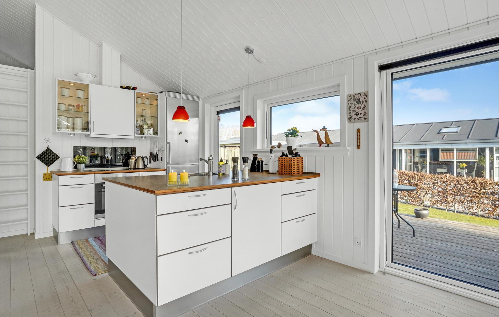 Velkommen til dette hyggelige og smagfuldt indrettede feriehus, som bliver jeres dejlige base til en yderst afslappende ferie. Huset byder på lyse rum med store vinduespartier og møbler af høj kvalitet. Husets hjerte er den store, kombinerede spise- og opholdsstue med åbent køkken, således at feriens kok/kokke kan holdes med selskab under madlavningen. I opholdsområdet finder I en brændeovn og et stort fladskærms-TV, der indbyder til hyggelige filmaftener.