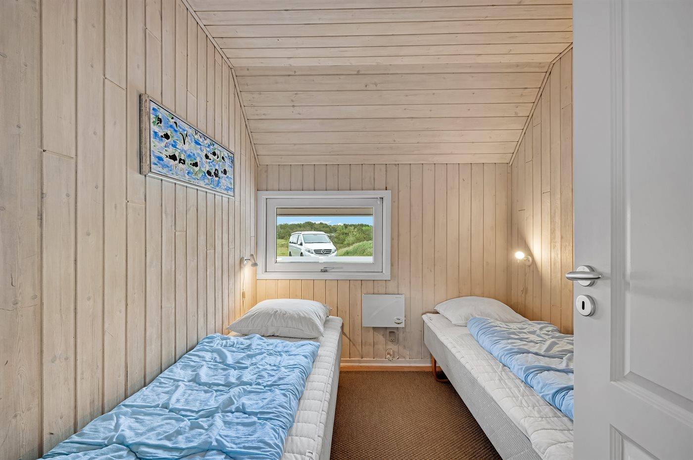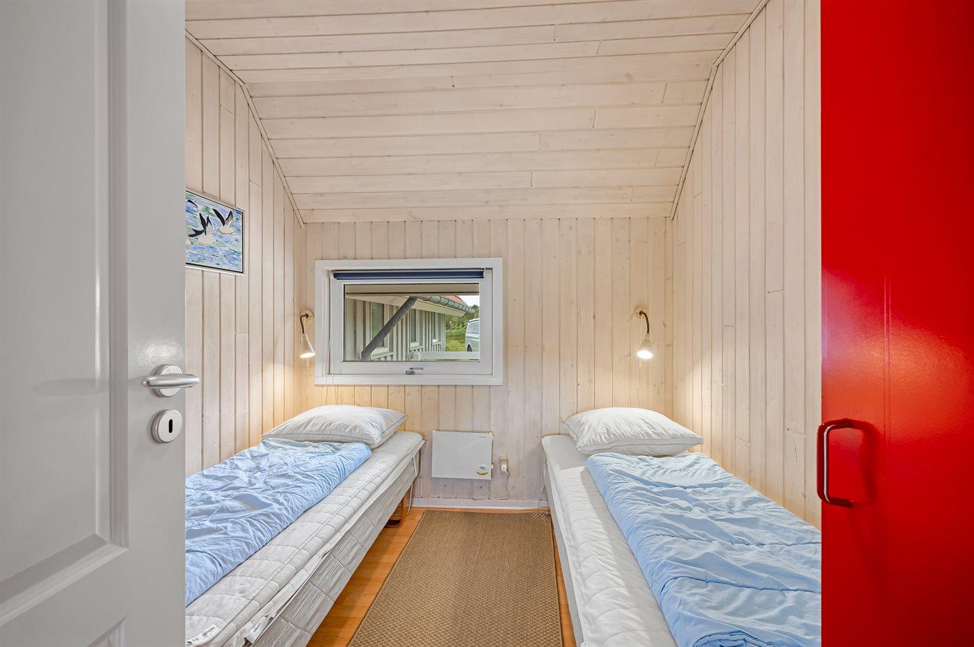Der er i alt 4 soveværelser. Sovepladserne fordeler sig på: 4 sovepladser i dobbeltsenge. 4 sovepladser i enkeltsenge. Derudover er der 1 stk. barneseng.
