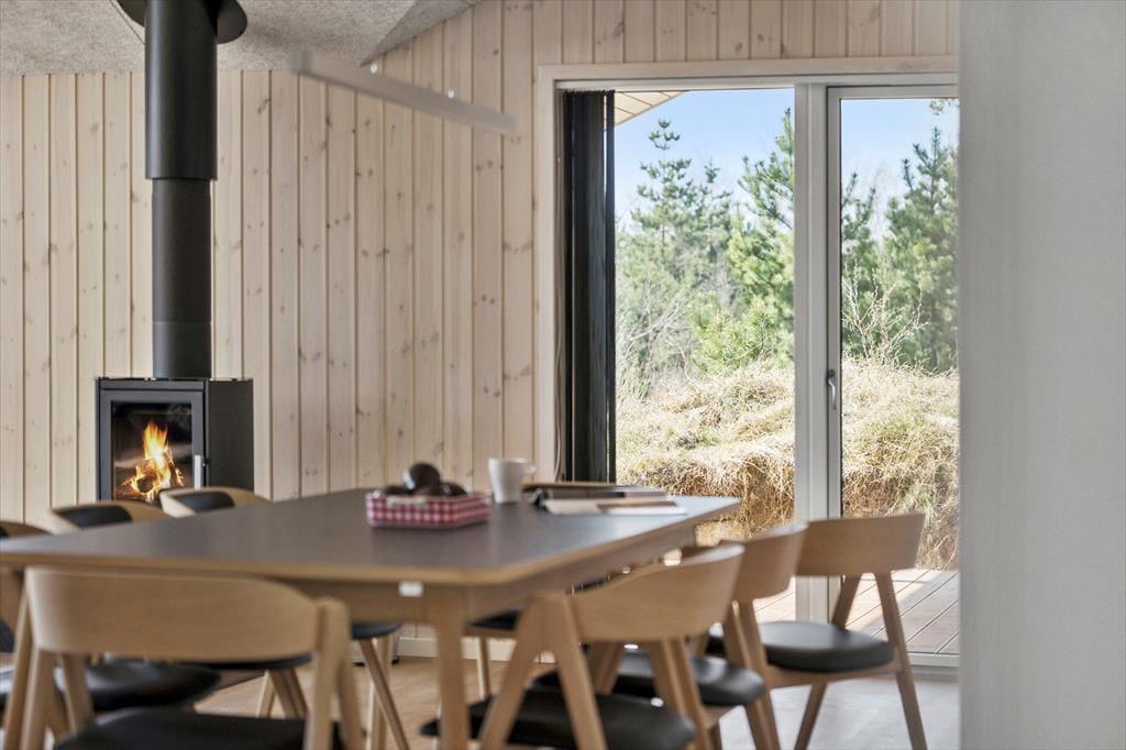 Træd indenfor i dette indbydende sommerhus, hvor lys og rummelighed er i centrum. De åbne og luftige værelser giver dig en følelse af ro, mens de mættede farver og de elegante trædetaljer skaber en hyggelig og varm atmosfære. Det er det ideelle sted at finde sig selv med en god bog foran brændeovnen eller til at samles om en brætspils-aften med familien. De store vinduer slipper naturligt lys ind og giver udsigt til klitlandskabet, så du kan nyde de smukke omgivelser, selv når du er indendørs. Planløsningen inkluderer desuden dejlige soveværelser, hvor du kan trække dig tilbage efter en dag fyldt med oplevelser.