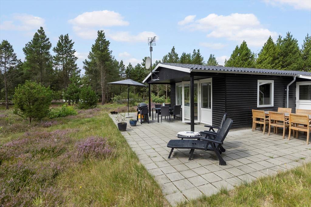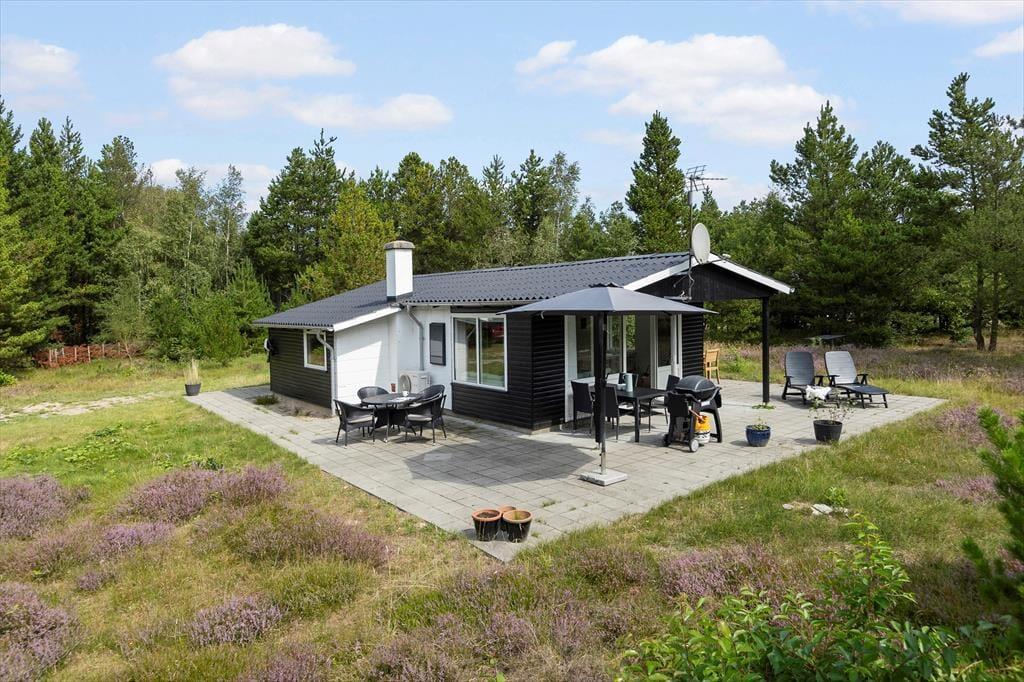 Udenfor venter en skøn have med plads til både solbadning og skyggetimer. Den store naturgrund på 2.600 m² er et væld af oplevelser med lyng, fyr og blåbær, og her kan du finde adskillige læ- og solpladser, som passer til dagens humør. Udebruser med varmt og koldt vand giver mulighed for et friskt bad hvor du, efter en dejlig dag på stranden, kan skylle sandet og saltet af. Uanset om du vil nyde morgensolen, grille om aftenen eller blot slappe af i en liggestol, vil du elske de mange kroge i haven. Det store areal er perfekt til leg, boldspil eller blot afslapning i den fredelige, naturskønne ramme.